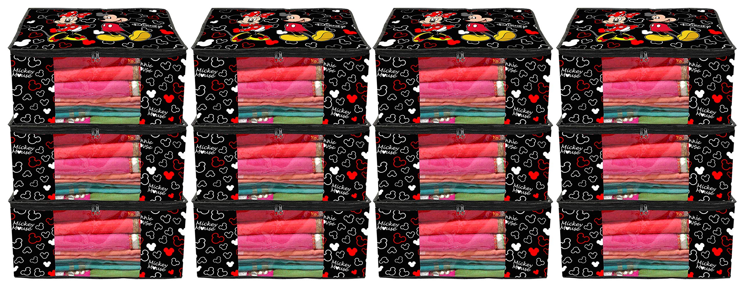 Kuber Industries Non Woven Disney Mickey Print Saree/Clothes Cover with Window Kuber Industries non woven Disney Mickey Print saree cover to organize and store your heavy and costly sarees dust, dirt and water safe. This beautiful Disney Mickey Print makes your wardrobe looks beautiful and organized too. Transparent front window gives you the convenience of better visibility. 2 premium quality zippers for easy opening and closing. Made of VIRGIN 90 GSM non woven fabric makes it durable and water repellent too. Best option to use while travelling.Large Front Window to instantly know what is kept inside without opening the bag again and again.Cotton breathable fabric to keep your stuff inside protected from dust dirt and bad spell. Quilted from all the sides to give cushion to whatever is stored inside.Description