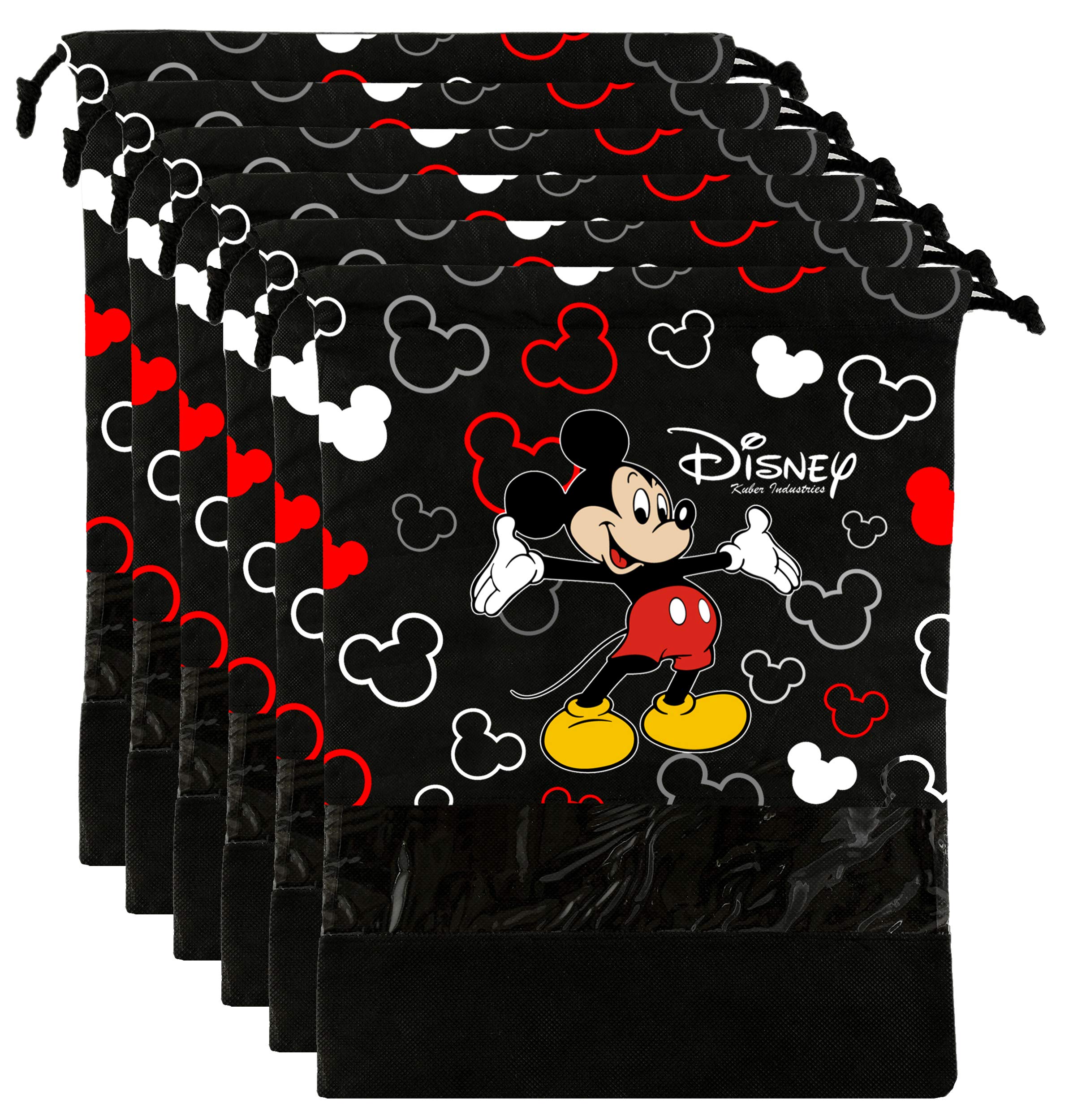 Kuber Industries Disney Mickey Print 6 Piece Non Woven Travel Shoe Cover, String Bag Organizer (Black) -HS_35_LUGGAGE17971