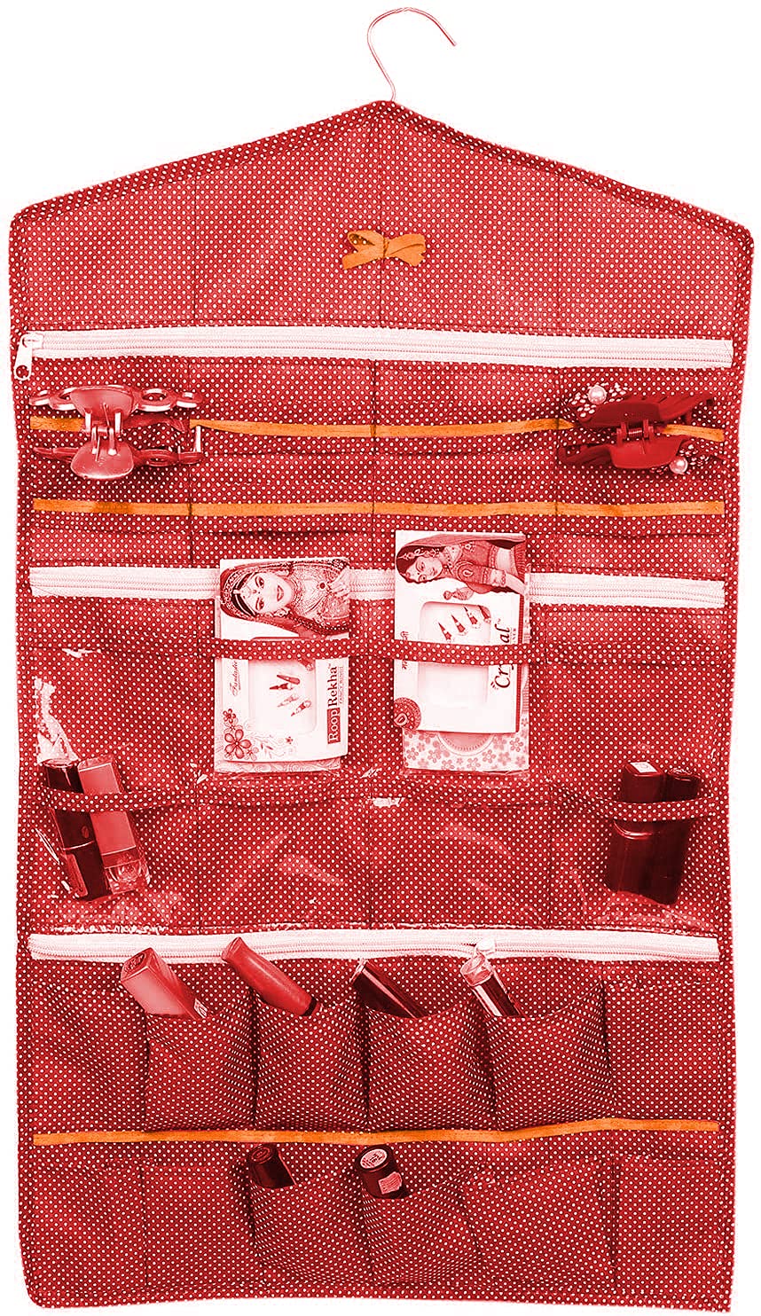 Kuber Industries multifunction with multipockets Storage Bag Door Wall Hanging Long life High quality dressing kit for organizing your costly and favorite make up material. You can Hang it anywhere in your home, Comes with steel Hanger ,so you can easily Hang anywhere in your home. Prevent your favourite daily use make up material from dust and moisture. Multipurpose Kit, Bindi Kit, Make Up Organizer, Daily Use Kit, Earrings,Pendants,Necklace,Bracelet, Ring, Watches,CHains,Pearl Jewellery,Accessory,Head rope,Headband or nail polish, cuffs, makeup brushes, Eye sHadow etc. It can rolls up for easy carry, perfect for travel,Convenient to carry your JewelleryOrganised your jewellery in a jewel box or keep it organized in jewelry organizers. It will help you find the right necklace for that new dress, or earrings to match that new outfit. Organizing your jewels is not just about finding them easily when you need them, but also making sure they are kept securely without getting tangled up. Kuber Industries Jewellery organizer helps organize your costly and favorite Jewellery while travelling or at home.Transparent pouches give you the convenience to separately store your Jewellery as per your need. Our Goal to provide jewellery organizer options at pocket-friendly prices.