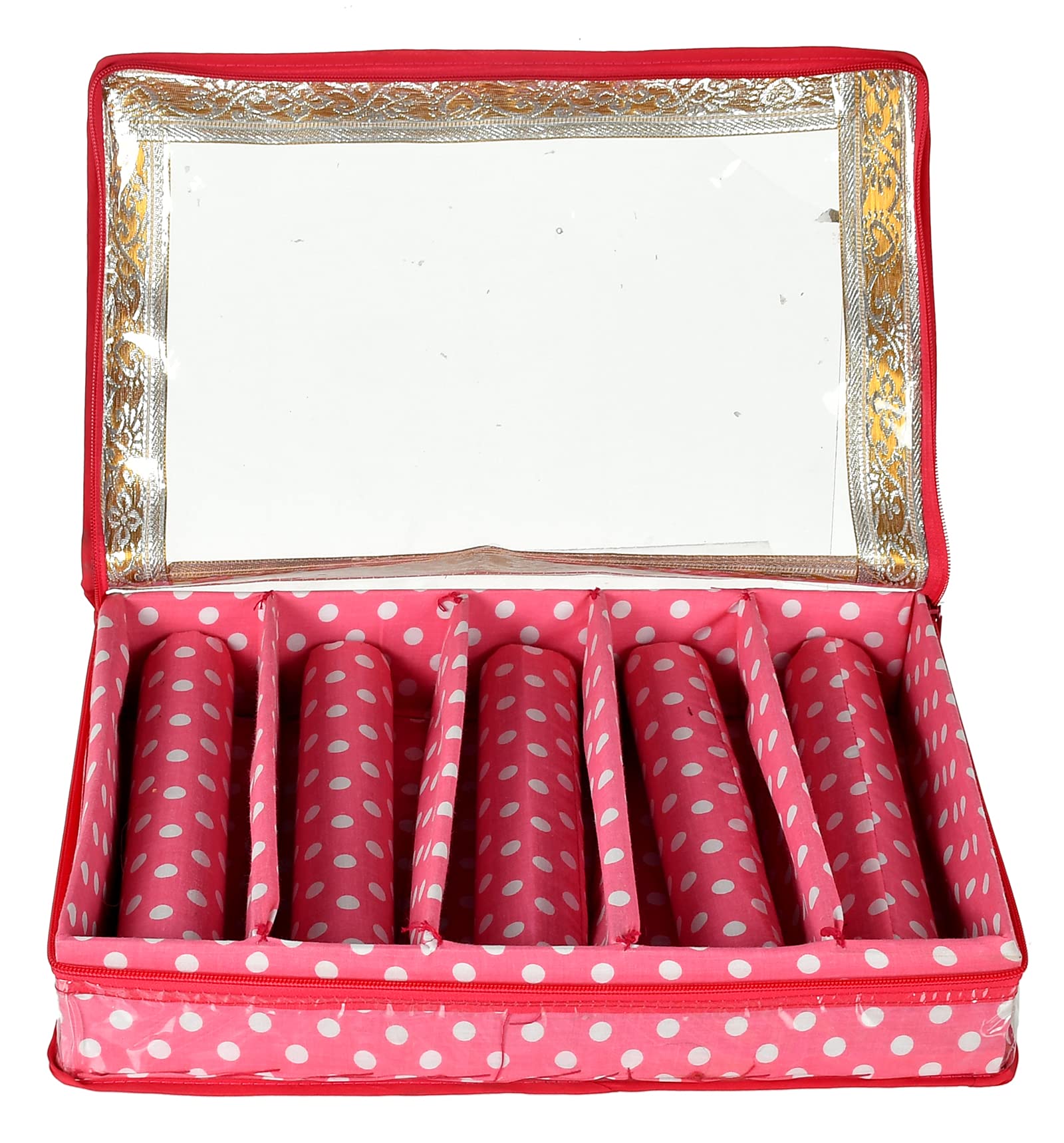 Kuber Industries Bangle box is made of good quality pvc material so, this is very durable, long-lasting and very useful. A bangle is an ageless accessory that has a special place in every woman's collection. The bangle box or a casket is a beautiful container and is mostly used to keep many high-end accessories and precious jewelry. The bangle box is a one-stop solution to all the problems. The safety of bangles is ensured as it has a high-class supportive frame that serves the purpose well. The classy bangles can be saved from any kind of vulnerability of harm or damage. It prolongs the natural shine and shimmer of the bangles that make them look like new and brings in loads of appreciation. The arranged bangle box saves you from extra efforts to save the most complimenting thing of your jewelry. It can prove to be the most beautiful gift ever if you plan to give it to your near and dear ones. The box can also be a holder of minute earpieces or very small jewelry. It prevents any loss or misplacement of any jewelry kept inside it the future use.Detailed Specifications: