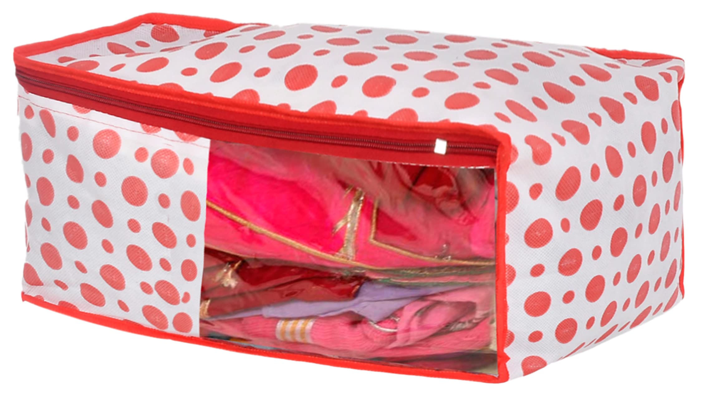 Kuber Industries Blouse cover is a great organizing companion for your clothes in the wardrobe that keeps your clothes well maintained in one place. It also saves your efforts for finding Blouse at the right time. Keeping your favourite Blouses at one place is made much easier with this cover, as its great volumnosityavails space for around 5-6 Blouses each. You can keep this Blouse cover in your wardrobe or carry on a travel to keep your Blouses in proper fold and wrinkle-free. To protect your precious Blouses we have come up with Non-Woven fabric which is currently the highest standard in the Blouse cover / Blouse bag market , Long life Blouse cover bag for organizing your costly and favourite Blouses. This Blouse cover are LightWeight and Portable, easily Move to Shelves, Closets, Wardrobe etc—Quickly Pack/Unpack between Seasons, Traveling, Moving, or as Needed. Fold Away or Collapse Flat Under Bed or in Drawers When Not in Use. Transparent see-through window for easy identification of contents. Transparent window providing to instantly know what is kept inside. The clear window saves time when you are searching for any contents. The clothing storage bag is equipped with stainless steel zippers which are very sturdy and smooth to ensure long-lasting durability. The two-way zippers is durable and long-lasting and allow the bag to easily open and close, no matter how full. Zipper closure protects against dust, pest, water damage, and smell.Detailed Specifications: