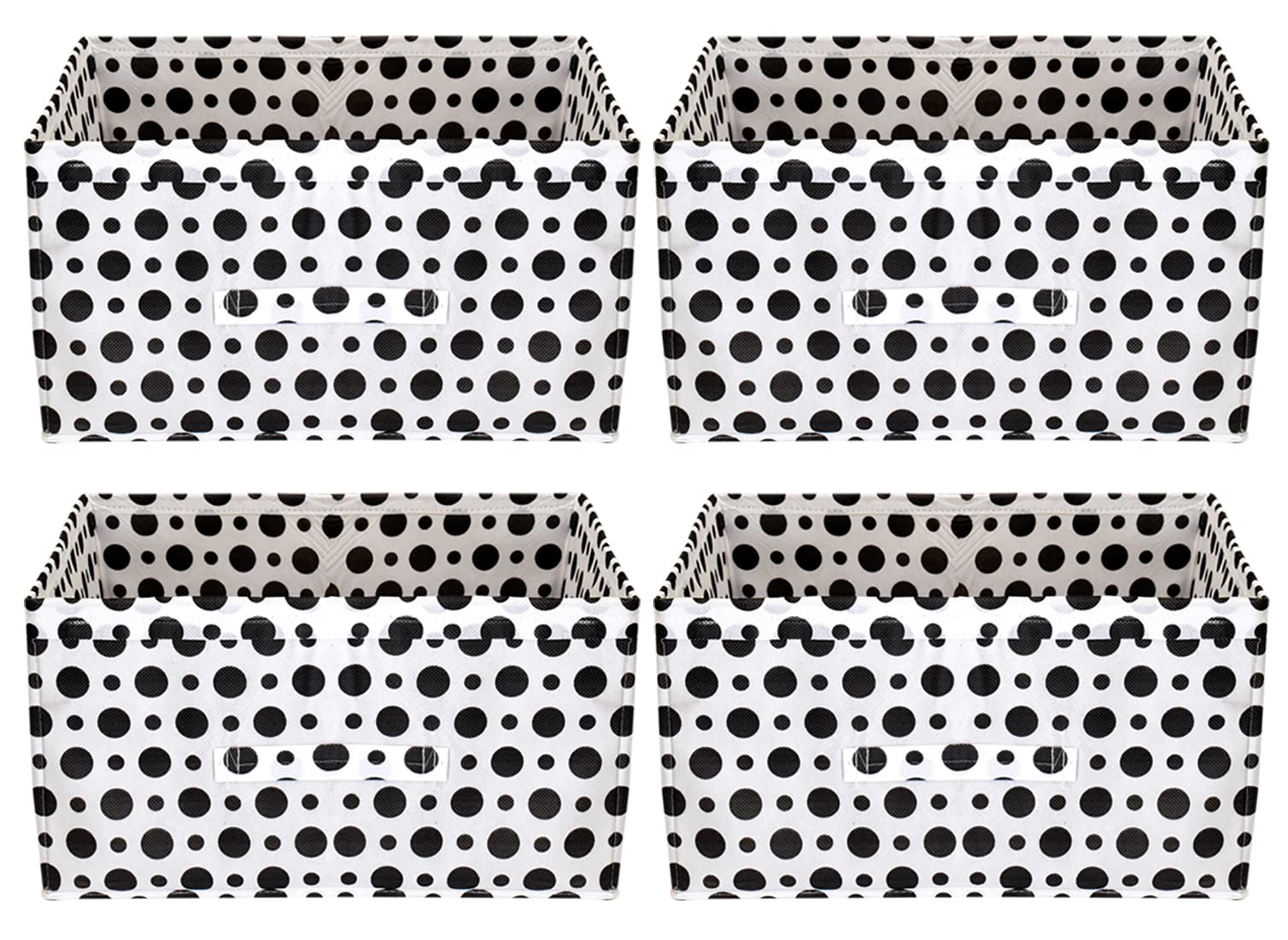 Kuber Industries Dot Printed Printed Multipurposes Rectangular Flodable Storage Box, Drawer Storage and Cloth Organizer- Pack of 4 (Black & White)-HS43KUBMART26347
