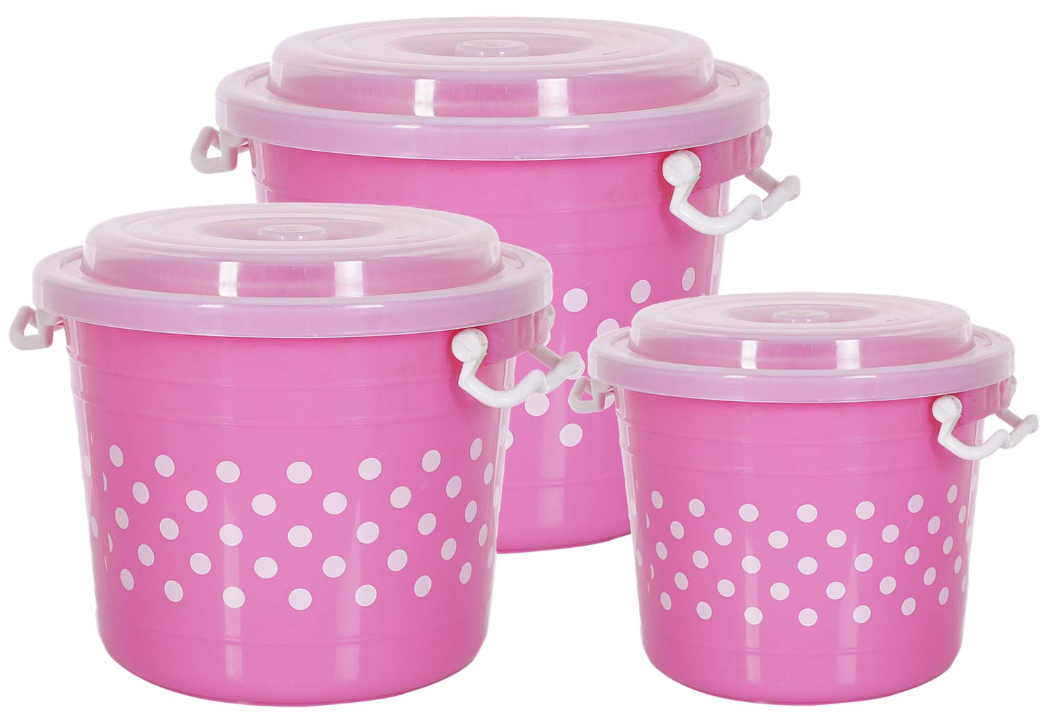 Multipurpose Food Grade Plastic Container with 6 Litres, 11 Litres, 16 Litres capacity, Premium Quality and Dots Design. Stackable .Ideal for storing Rice, Sugar, Wheat etc. These containers are a must have for every kitchen as they are truly multipurpose and can be used to store a variety of items These containers come with durable side handles which are also used to lock the lid. The lid is transparent so that the contents are visible. The materials used ensure that the containers last a long time. Can also be used in restaurants, shops etc.Detailed Specifications: