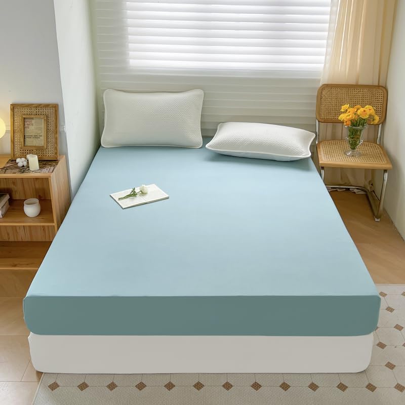 Homestic Mattress Protector for double beds combines the comfort of polyester with the added protection of a TPU layer. It shields your mattress from liquid spills, stains, allergens, and dust mites, ensuring a hygienic sleeping environment. The soft and skin-friendly fabric enhances your sleep experience, while the waterproof barrier keeps your mattress pristine. With its easy installation, elasticized skirt, and hassle-free cleaning, this mattress protector is a practical choice for busy households. Extend the lifespan of your mattress and enjoy a clean and fresh bed with the Homestic Mattress Protector.Detailed Specifications: