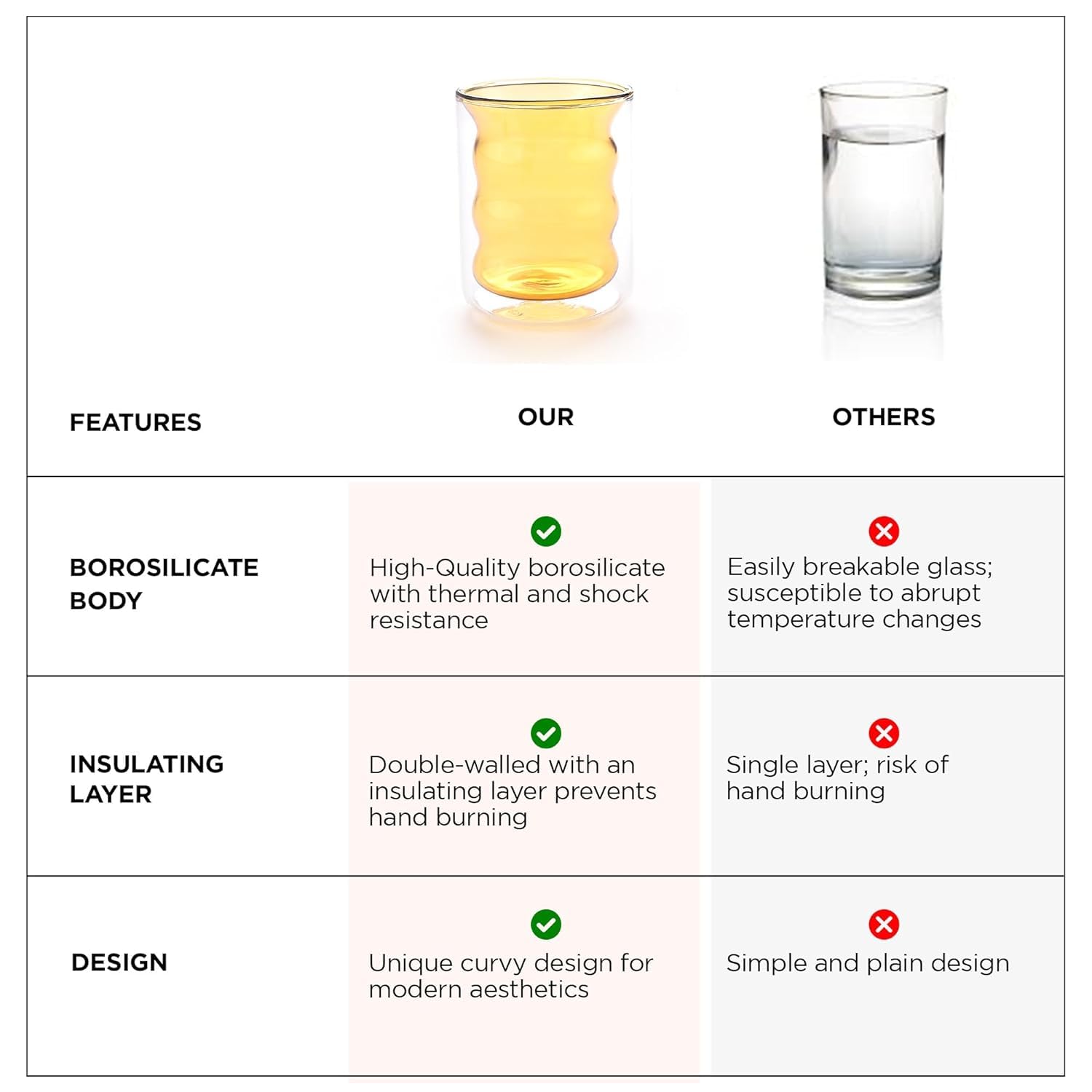 Introducing the Kuber Industries Double Wall Coffee Mug, where functionality meets sophistication in every sip. This meticulously crafted mug is engineered with borosilicate glass, renowned for its exceptional durability and heat resistance. Designed for the modern lifestyle, this mug transcends the ordinary with its double-wall construction, ensuring your beverages stay at the perfect temperature for longer durations. Whether you prefer piping hot coffee or refreshing iced tea, the Kuber Industries Double Wall Coffee Mug has you covered, keeping your drinks hot or cold without transferring heat to the outer surface. But it's not just about practicality; it's about making a statement. Encased in premium packaging, this mug exudes elegance and charm, making it the perfect gift for couples, friends, and family. Its sleek design adds a touch of modernity to any setting, whether it's your kitchen counter, office desk, or outdoor picnic. Crafted from high-quality borosilicate glass, this mug boasts exceptional durability, ensuring it withstands the test of time. Say goodbye to leaks and spills with its innovative leak-proof design, while its easy-to-clean construction makes maintenance a breeze. Experience unparalleled convenience with the Kuber Industries Double Wall Coffee Mug. Its heat and condensation-resistant properties ensure a comfortable grip, while its versatile design makes it ideal for enjoying your favorite beverages on any occasion. Elevate your drinking experience with Kuber Industries 's commitment to quality and style. From morning rituals to evening wind-downs, this mug promises to be your faithful companion, delivering both function and flair in every sip. Choose Kuber Industries for a mug that's as exceptional as you are.Detailed Specifications: