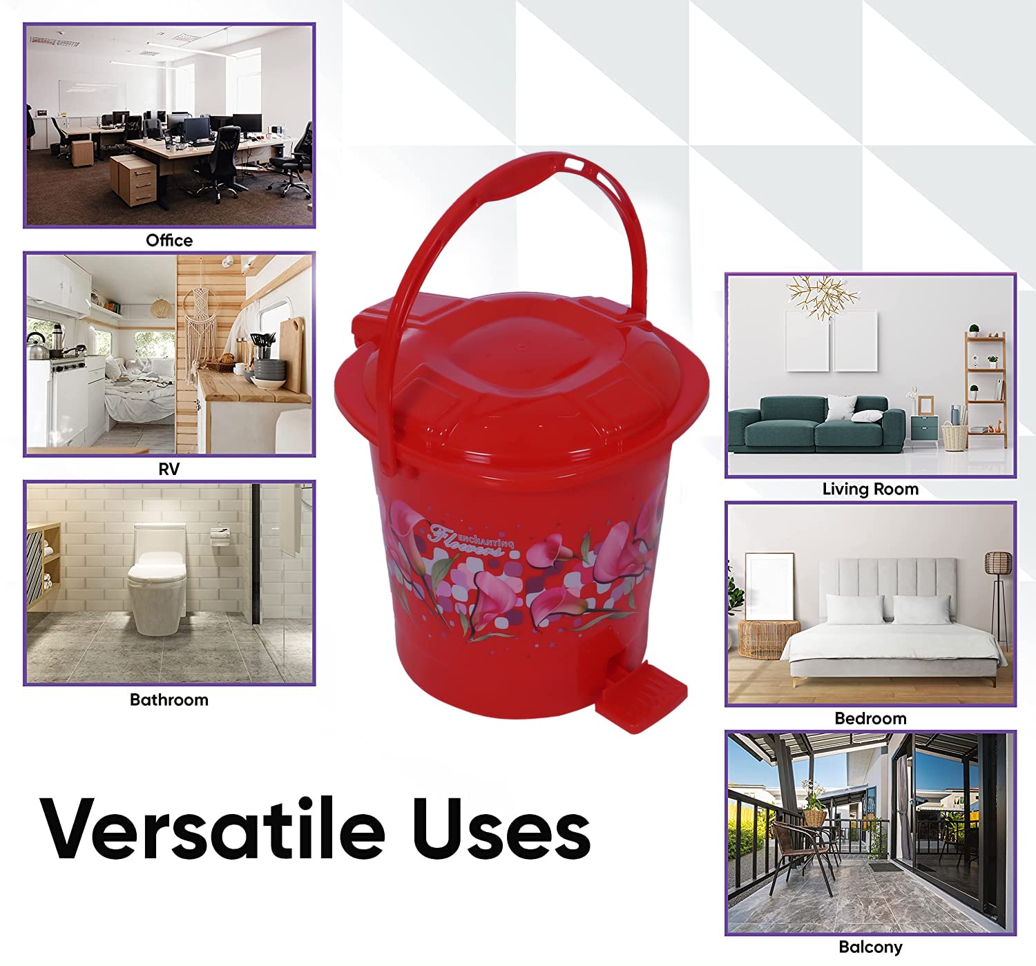 This sturdy plastic dustbin from Kuber Industries an ergonomic design to house your household waste. It is equipped with a leg pedal that helps to open the dustbin lid without having to touch it with your hands.The lid keeps away the odour from spreading in the ambience. Keep your envirThis sturdy plastic dustbin from Kuber Industries an ergonomic design to house your household waste.The lid keeps away the odor from spreading in the ambience. Keep your environment clean with this modern-day dustbin.onment clean with this modern day dustbin.Detailed Specifications:
