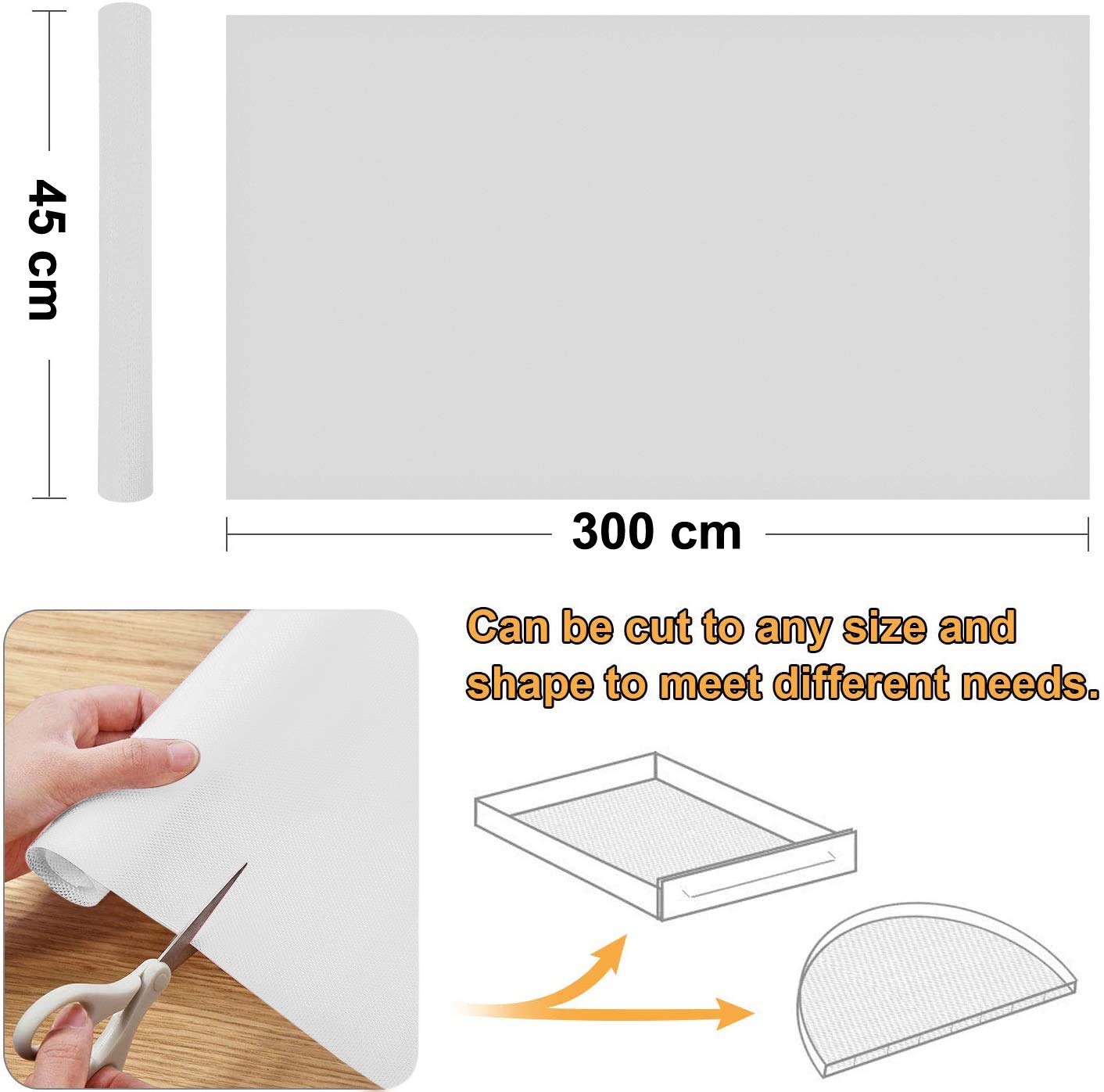 Safe & Reliable:- Made by premium food grade PVC material, BPA free and odor free, safe to be used in contact with fruit and vegetable directly. Strong Protection & Durable:- Protect your tablecloth, just wipe can remove the water or oil on the shelf liner, easy to clean and can be reused, even can be use for many years! Easy To Cut Any Size You Need:- Suit well for the racks to stand goods. Easy to cut, install, replace and reposition without hassle. Sturdy enough and easy clean. Play Your DIY Creativity, Make Your Life Come With More Possibility! Being flexible and creative enough to use your imagination can be cut into any shape and size, washed easily with soap in cold water, and then laid flat to dry. Strong Grip:- The smooth side can be attached to the refrigerator partition, don't worry about sliding. The other side uses a dot pattern to increase friction, don't worry about glass and other utensils slipping. Multiple Uses:- Our shelf liner is widely used for cabinets, cupboard, drawers, refrigerators, shoe shelf, desks, dining tables, etc. Protect your appliances, scratch-resistant, water stain resistant and durable.Detailed Specifications: