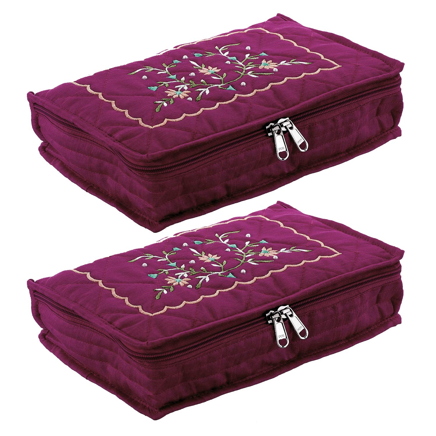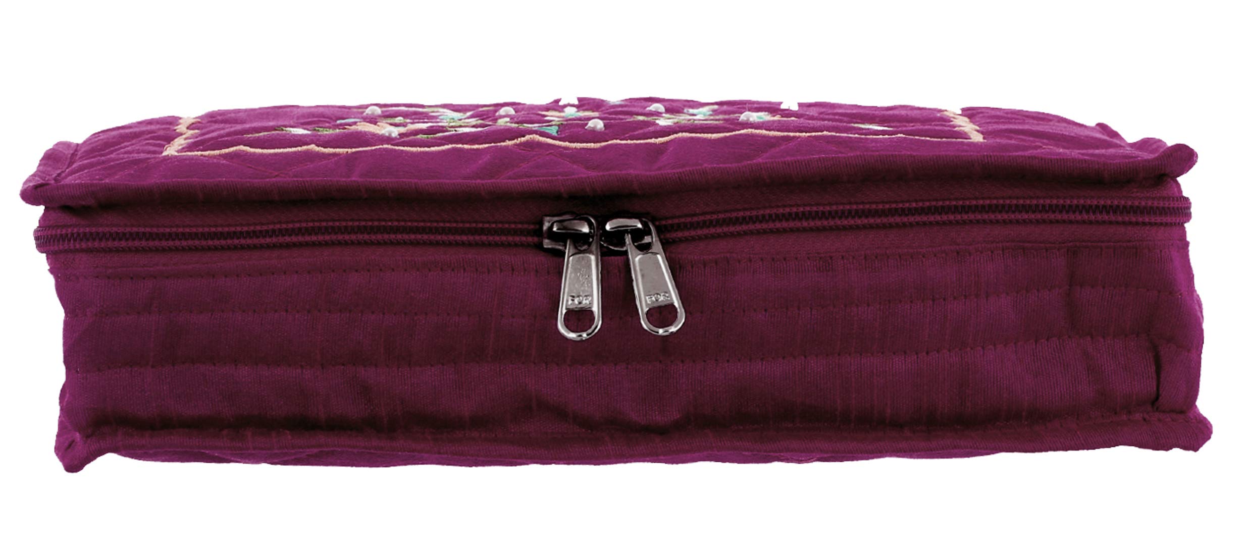 Jewellery box in heavy cotton material. 2 Large and 4 small pockets are there in large box with two extra pocket and pockets are inseparable. This is an exclusive item in which you can keep all industries brings products for every woman who dreams of being unique and stylish. It offers incomparable range of handbags and jewellery boxes for women. Their products are incomparable in terms of quality.