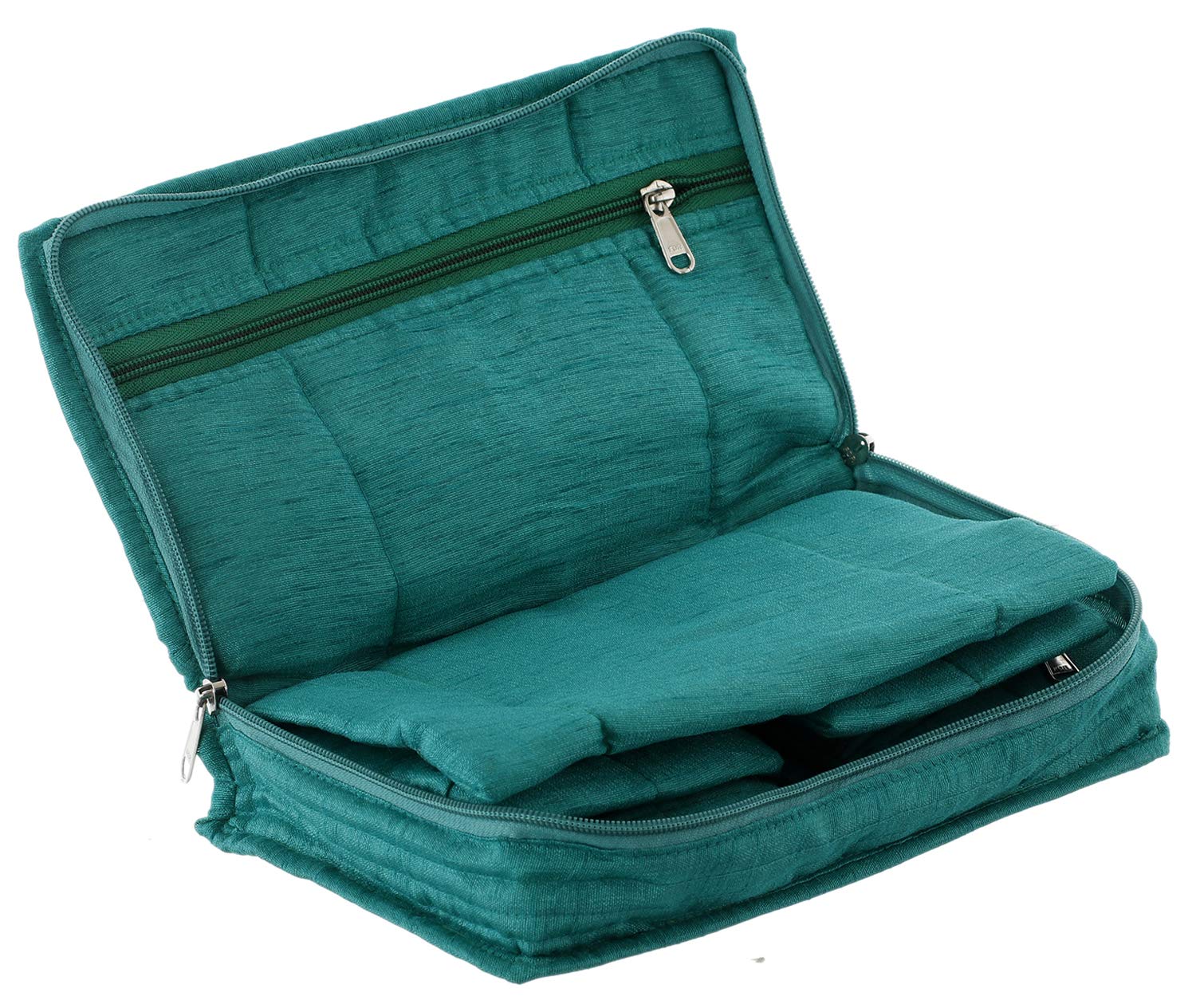 • Prevent your favourite costly cosmetic and jewellery from dust and moisture. Designer jewellery kit in heavy quilted material (green)