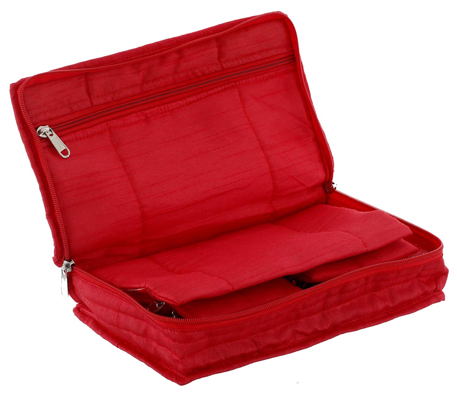 Jewellery box in heavy cotton material. 2 Large and 4 small pockets are there in large box with two extra pocket and pockets are inseparable. This is an exclusive item in which you can keep all jewellery. Kuber Industries brings products for every woman who dreams of being unique and stylish. It offers incredible range of handbags and jewellery boxes for women. Their products are incomparable in terms of quality.Detailed Specifications: