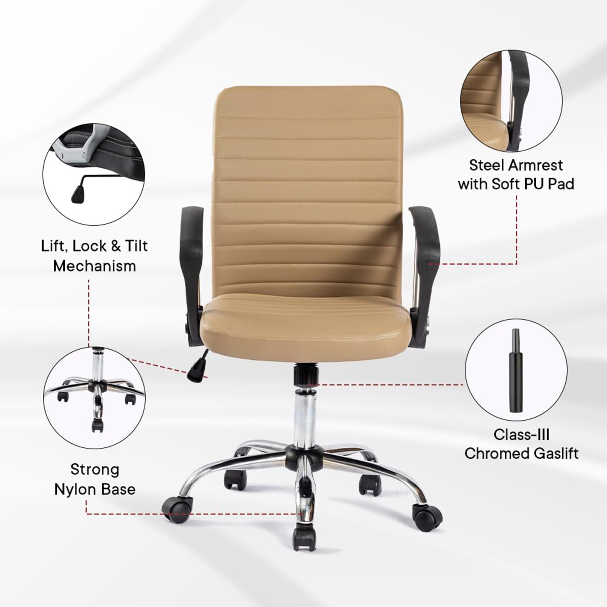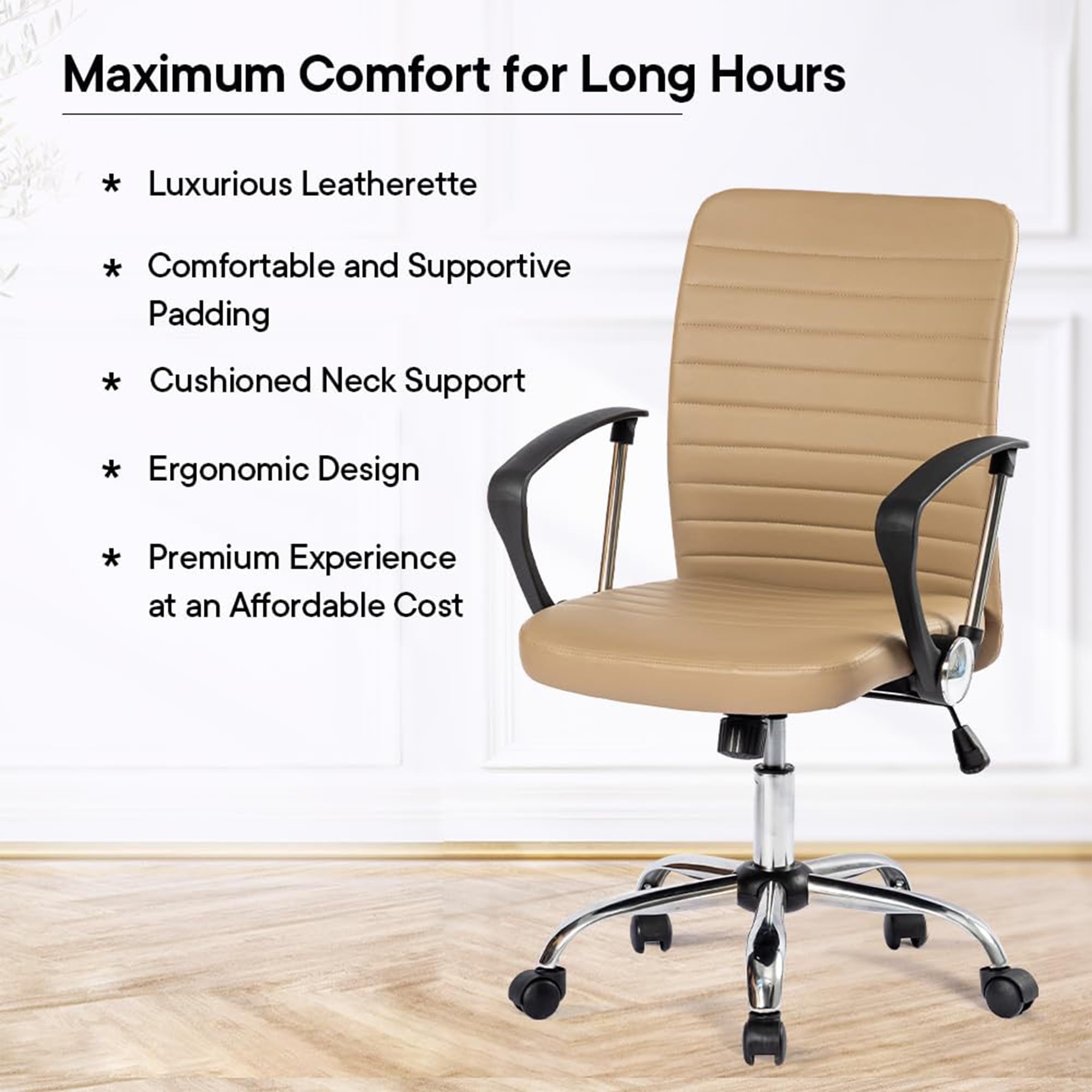 This chair office is perfect for work from home because it has arms which make sure you stay comfortable all day. Our rotating chair allows easy movement so you can switch tasks without any inconvenience. It is designed for mid-back support which is great for long hours. This chair is also ideal for students who need a sturdy study chair which can keep up with their study sessions. Don't worry about long hours since it makes sure you have the comfort you need.Detailed Specifications:
