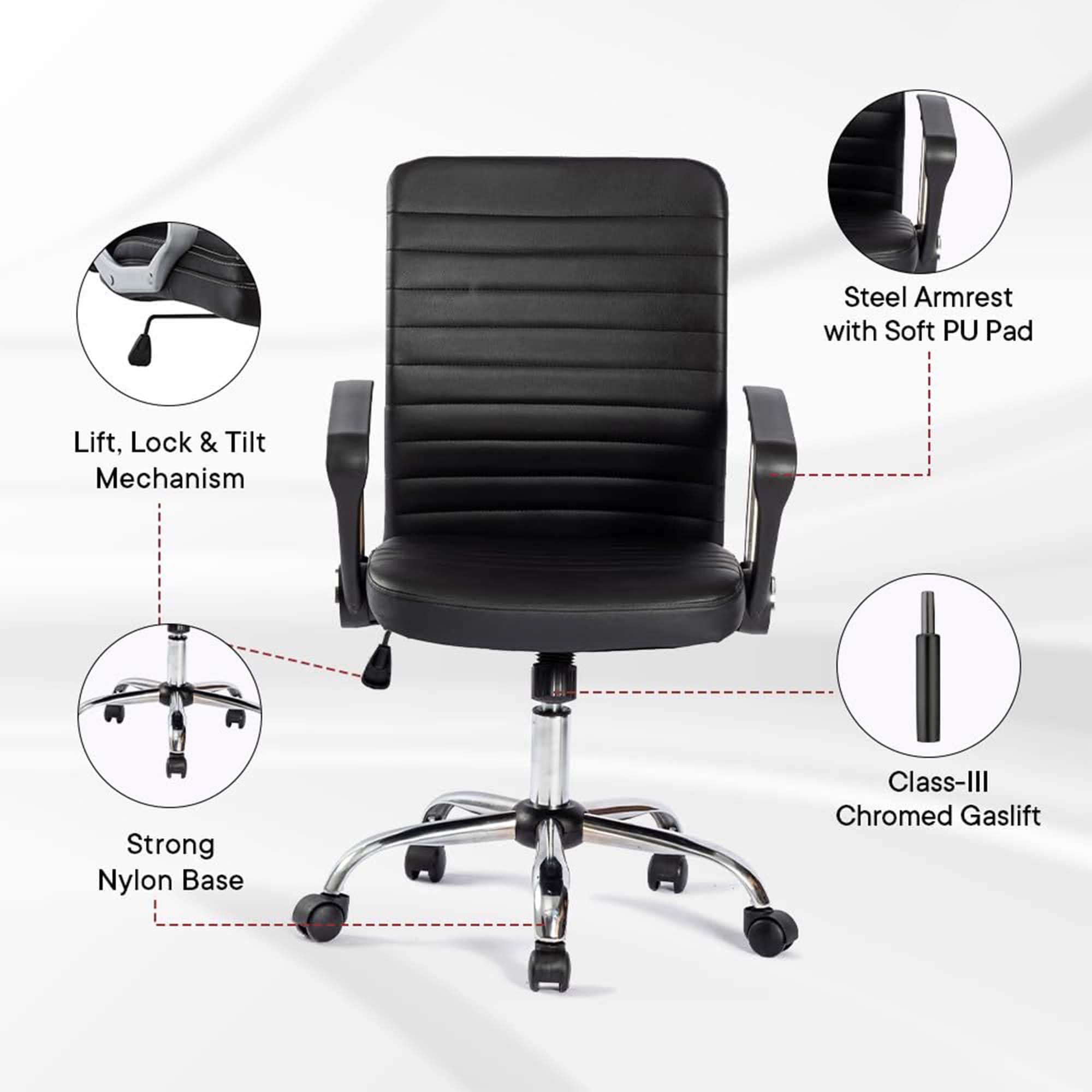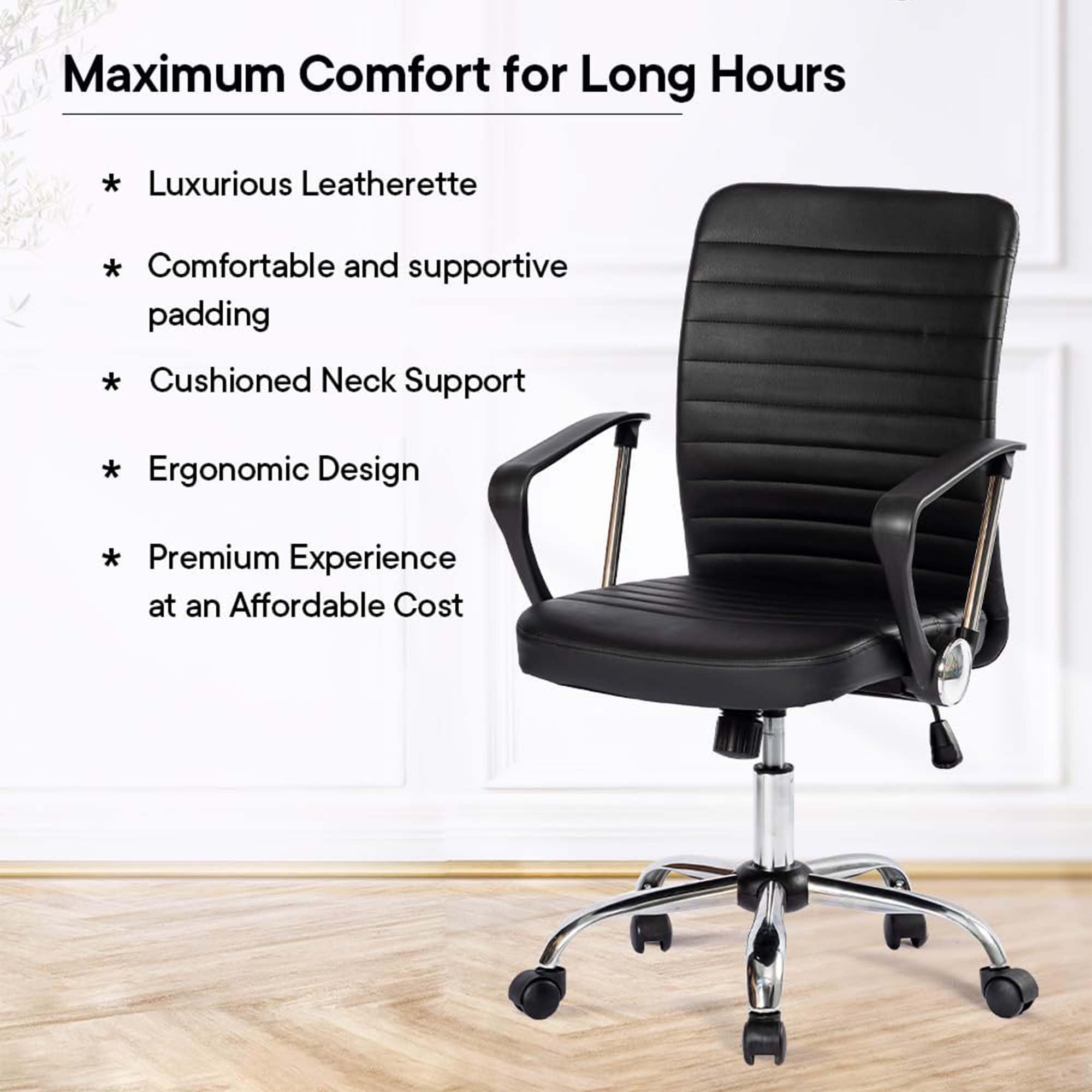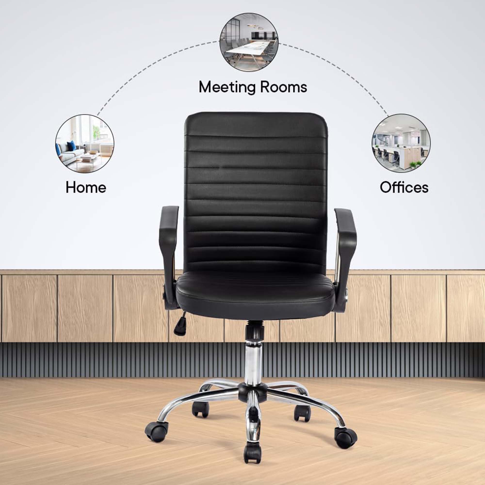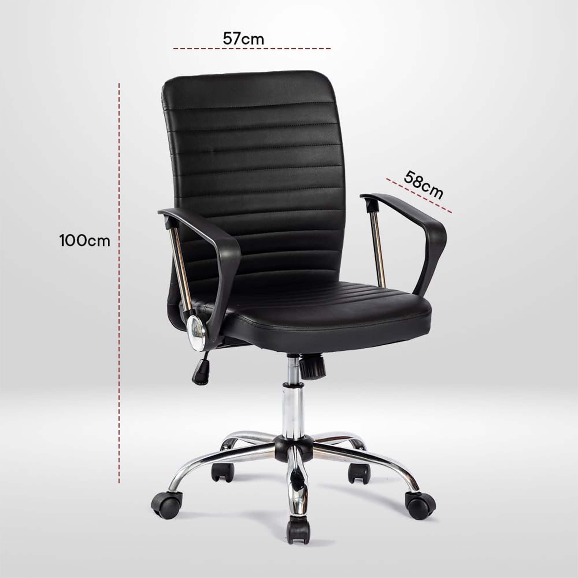This chair office is perfect for work from home because it has arms which make sure you stay comfortable all day. Our rotating chair allows easy movement so you can switch tasks without any inconvenience. It is designed for mid-back support which is great for long hours. This chair is also ideal for students who need a sturdy study chair which can keep up with their study sessions. Don't worry about long hours since it makes sure you have the comfort you need.Detailed Specifications: