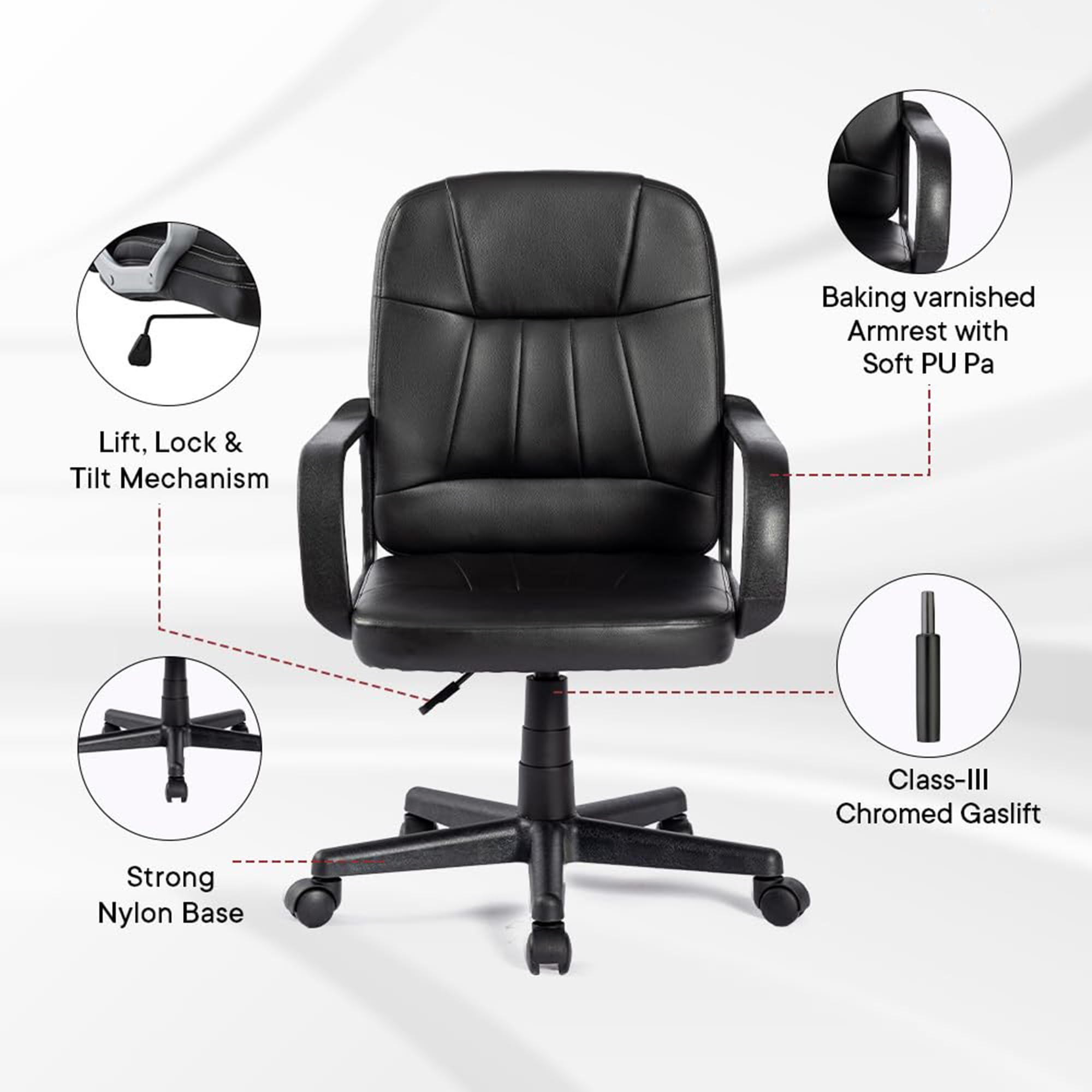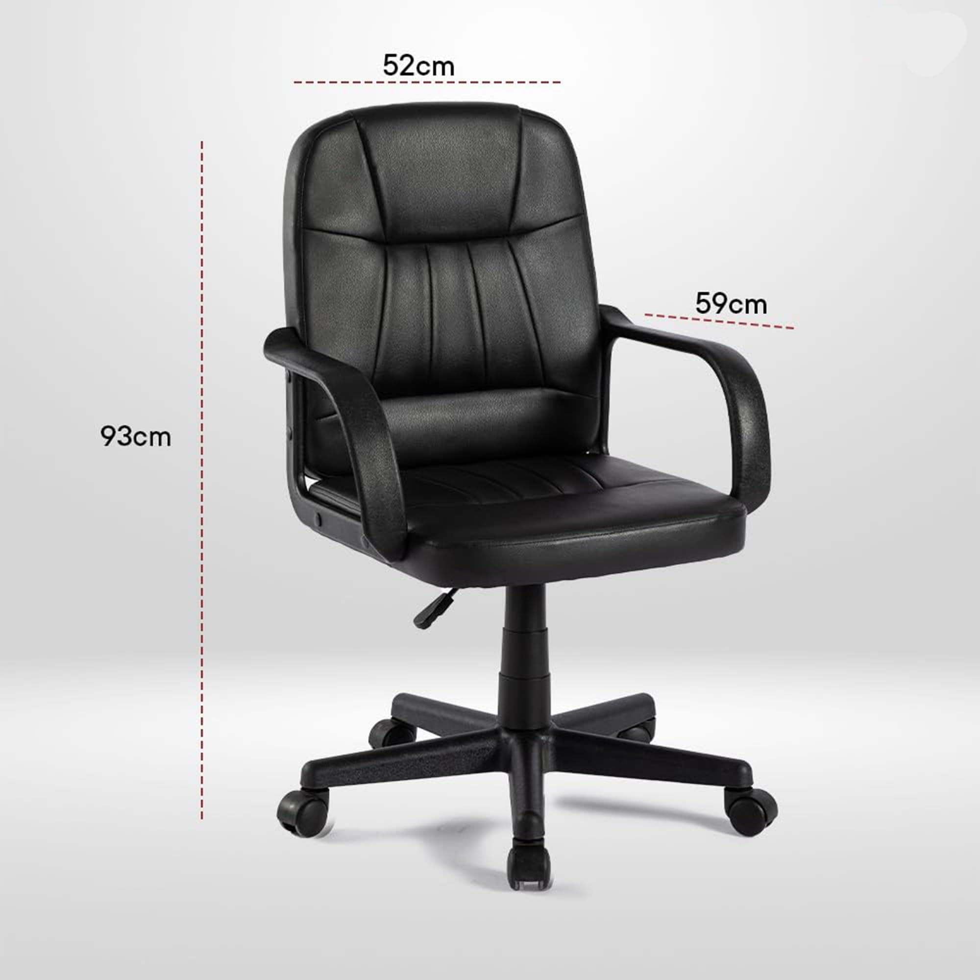 This chair office is perfect for work from home because it has arms which make sure you stay comfortable all day. Our rotating chair allows easy movement so you can switch tasks without any inconvenience. It is designed for mid-back support which is great for long hours. This chair is also ideal for students who need a sturdy study chair which can keep up with their study sessions. Don't worry about long hours since it makes sure you have the comfort you need.Detailed Specifications: