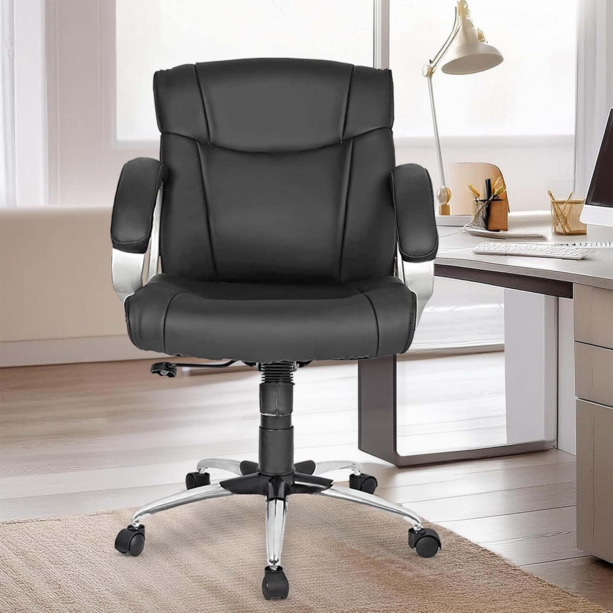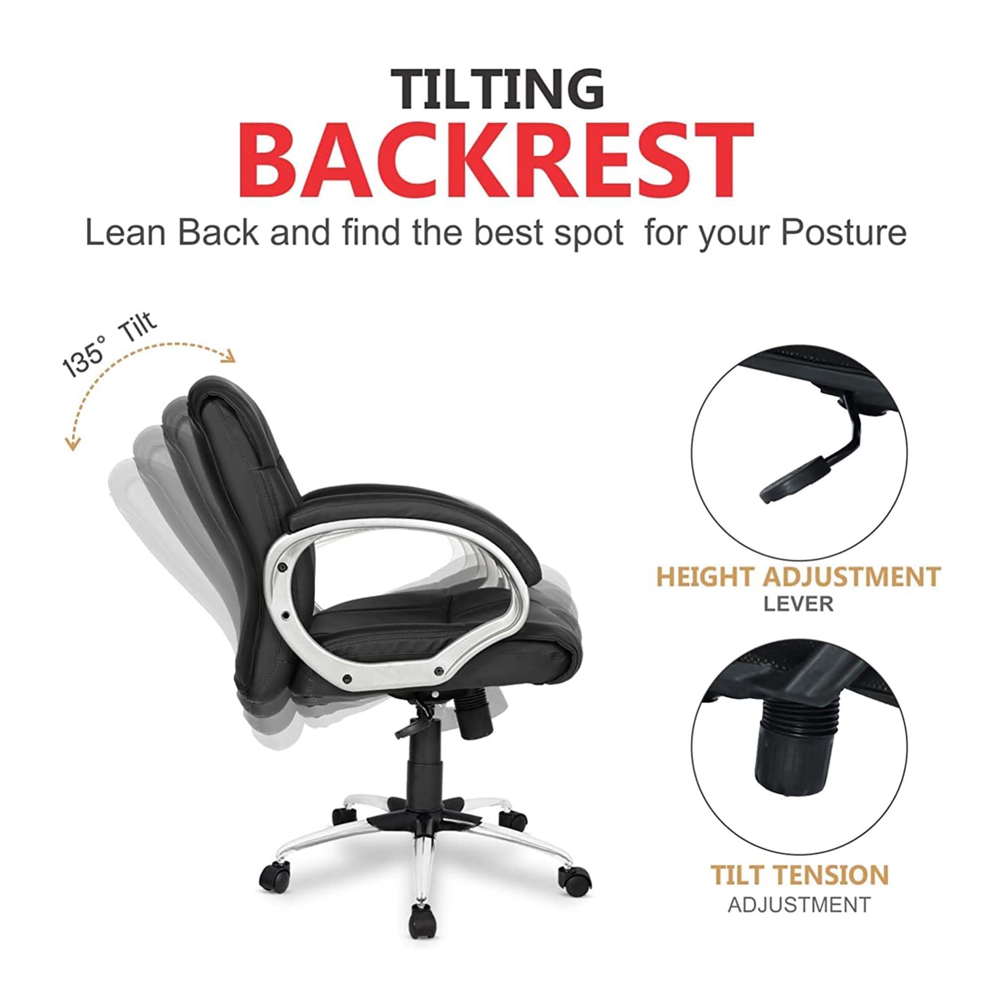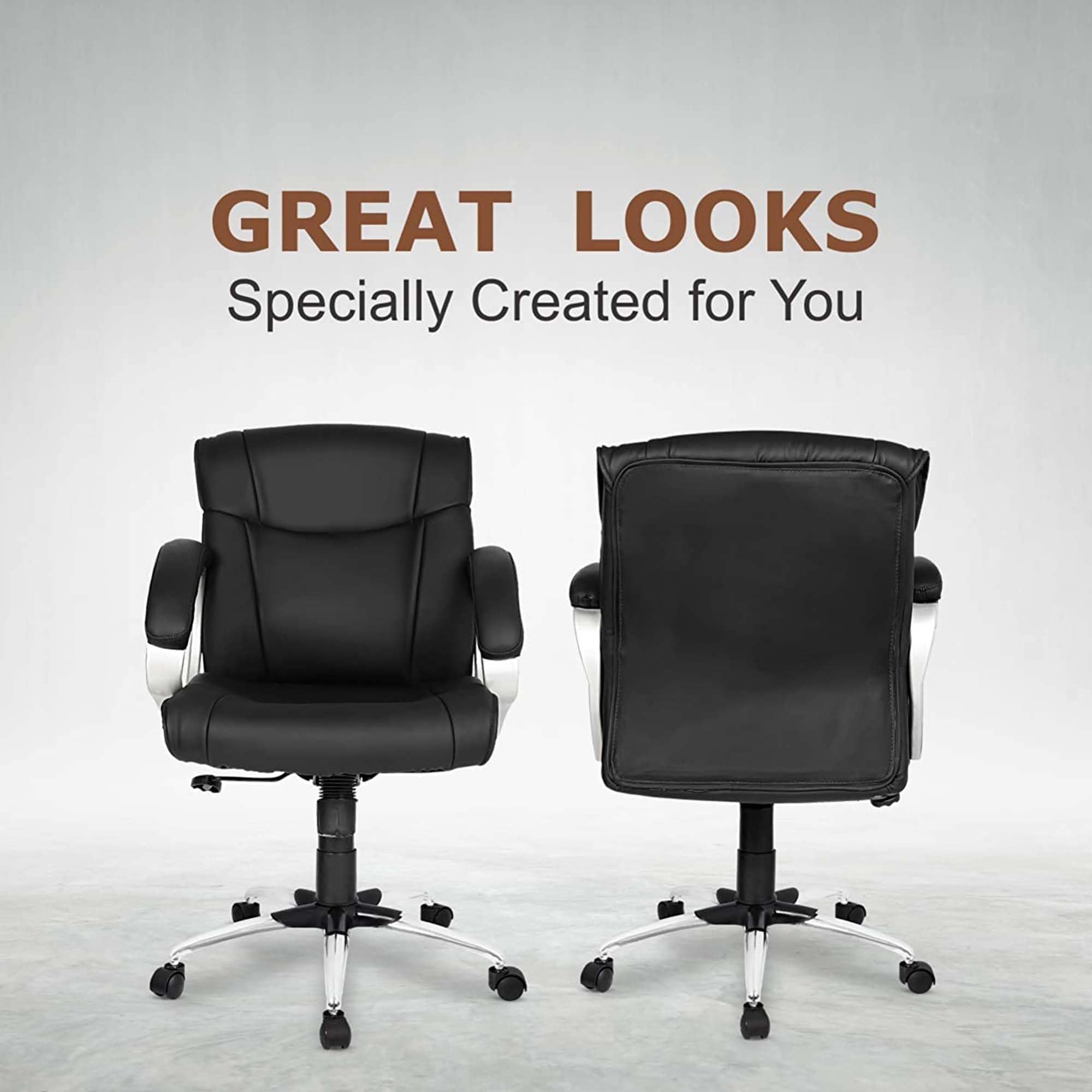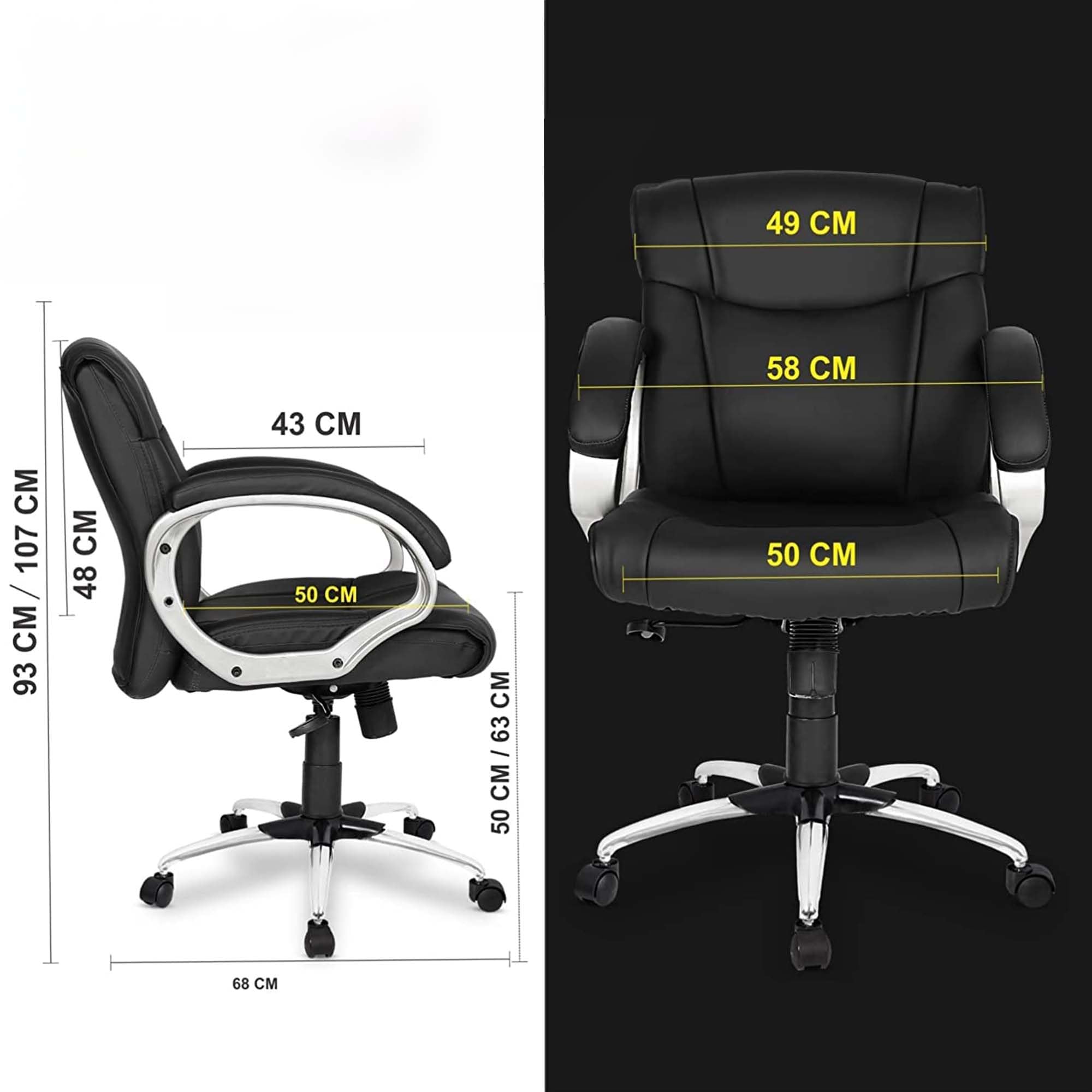 This chair office is perfect for work from home because it has arms which make sure you stay comfortable all day. Our rotating chair allows easy movement so you can switch tasks without any inconvenience. It is designed for mid-back support which is great for long hours. This chair is also ideal for students who need a sturdy study chair which can keep up with their study sessions. Don't worry about long hours since it makes sure you have the comfort you need.Detailed Specifications: