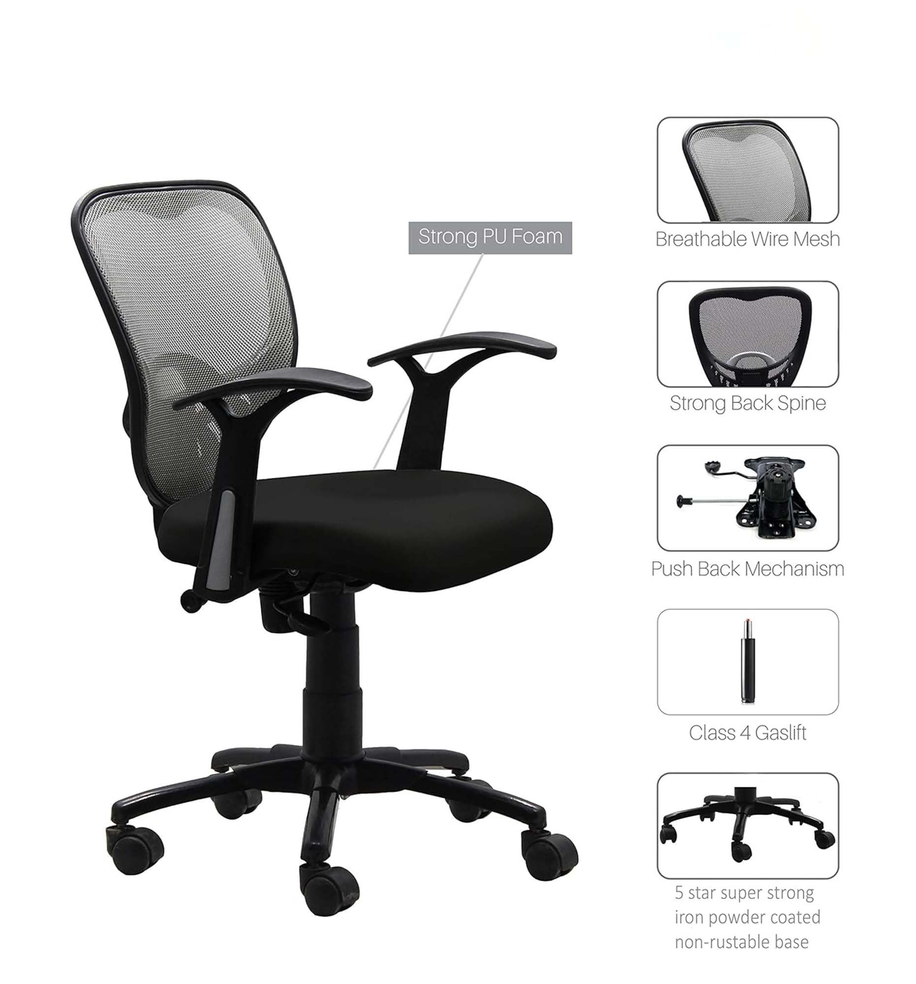 • ✅ Package Contains - (Set of 1) Office Chair | Color - Black | Material - Plastic & Meshback | Product Dimensions - 58X28X58 CM
