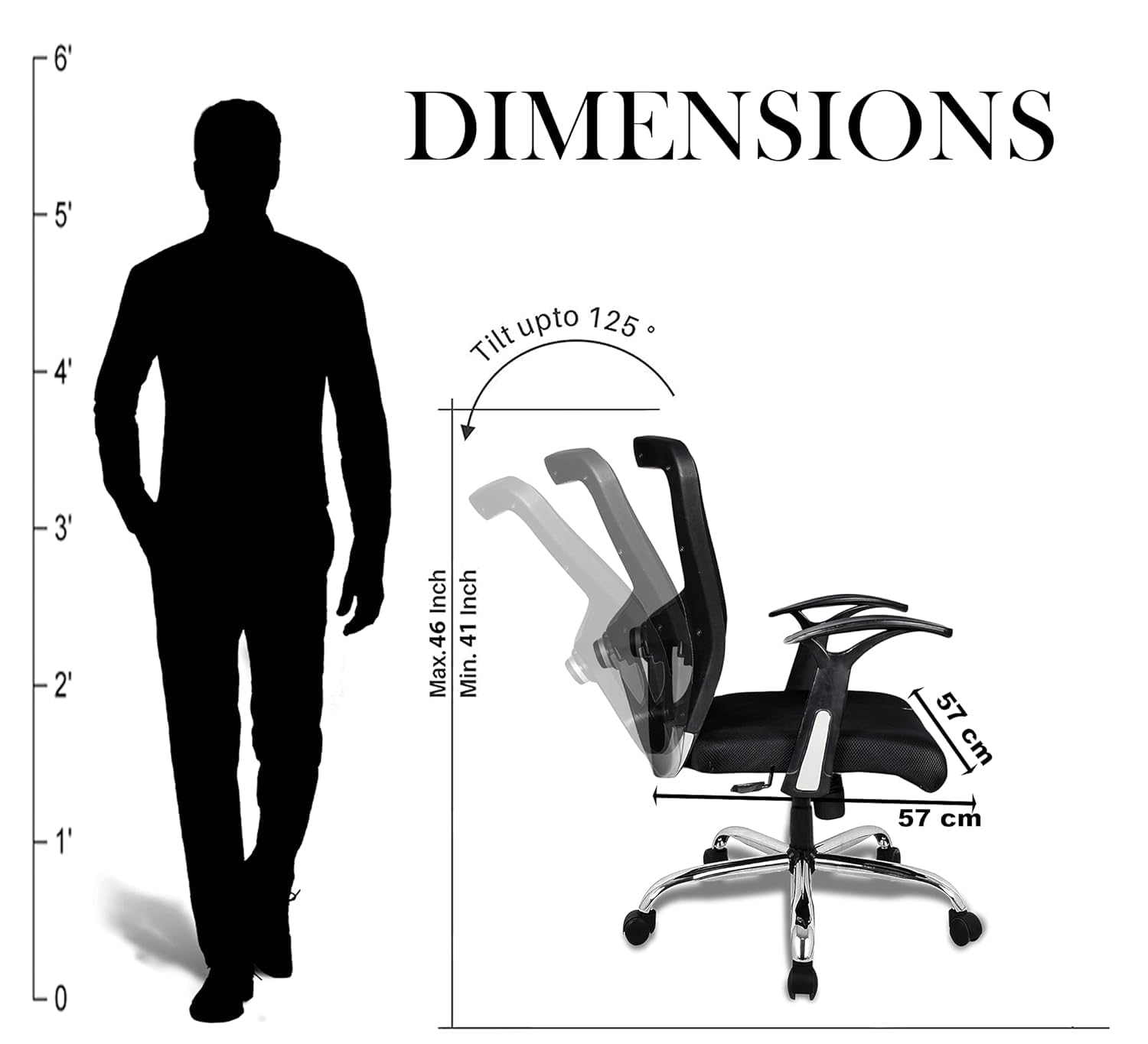 • ✅ Package Contains - (Set of 1) Office Chair | Color - Black | Material - Plastic & Steel with Chrome Base | Product Dimensions - 62X28X65 CM