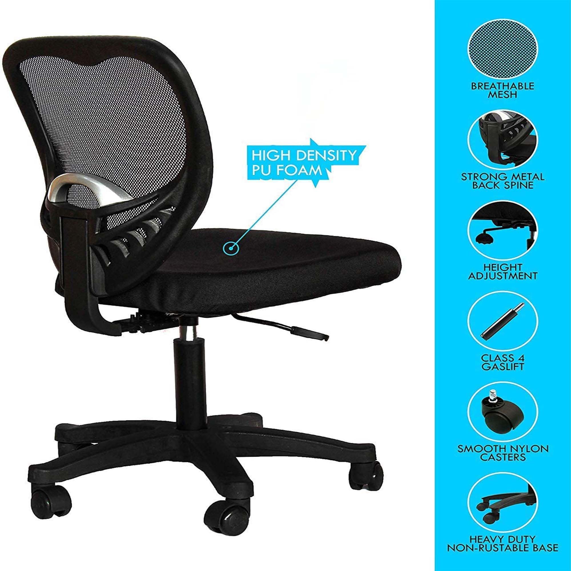 • ✅ Package Contains - (Set of 1) Office Chair | Color - Black | Material - Plastic & Meshback | Product Dimensions - 58X28X58 CM