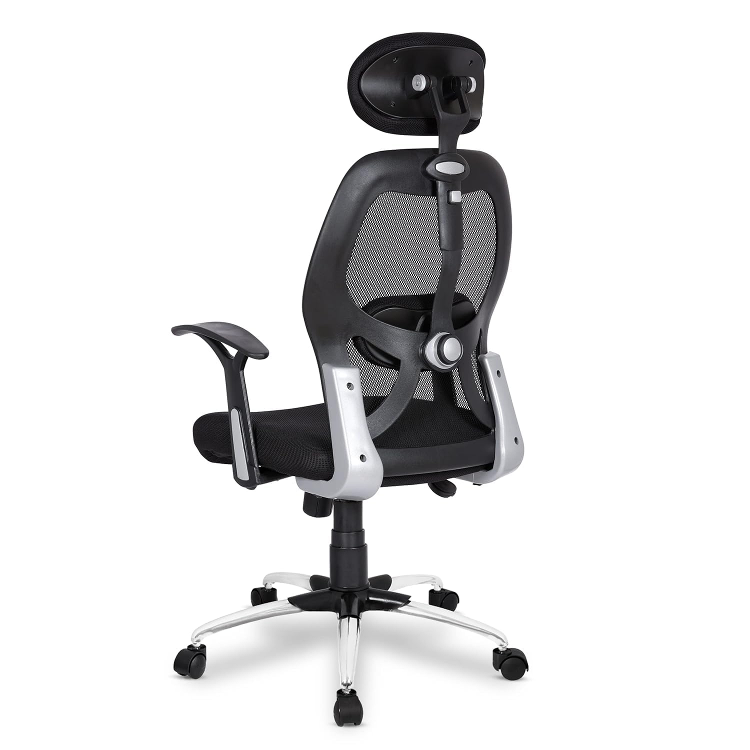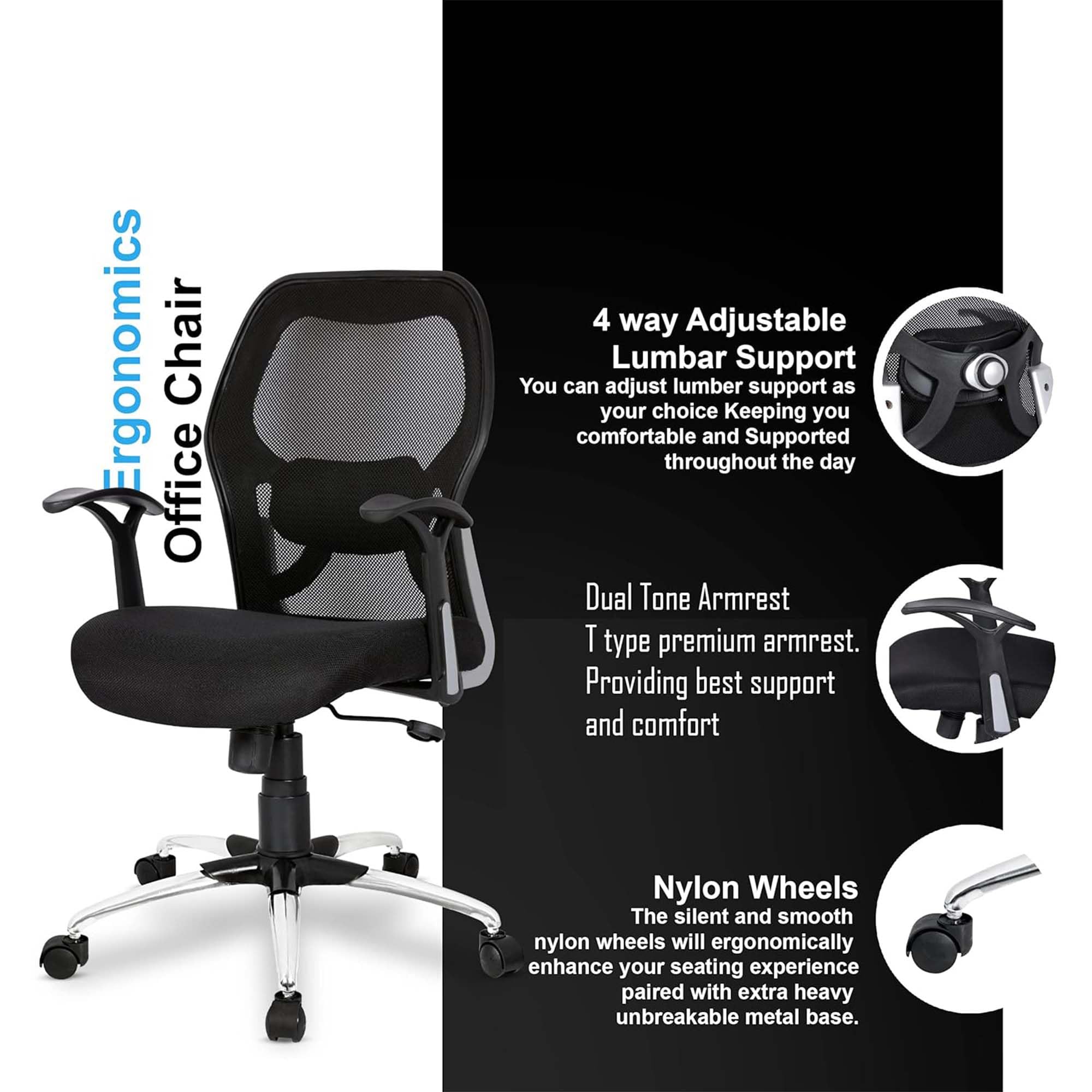 Kuber Industries Ergonomic Office Chairs for Work From Home | Comes with Manual Height Adjustable, Armrest, Headrest & 2D Lumbar Support | Comfy Study Chair for Students with Wheels | Black
