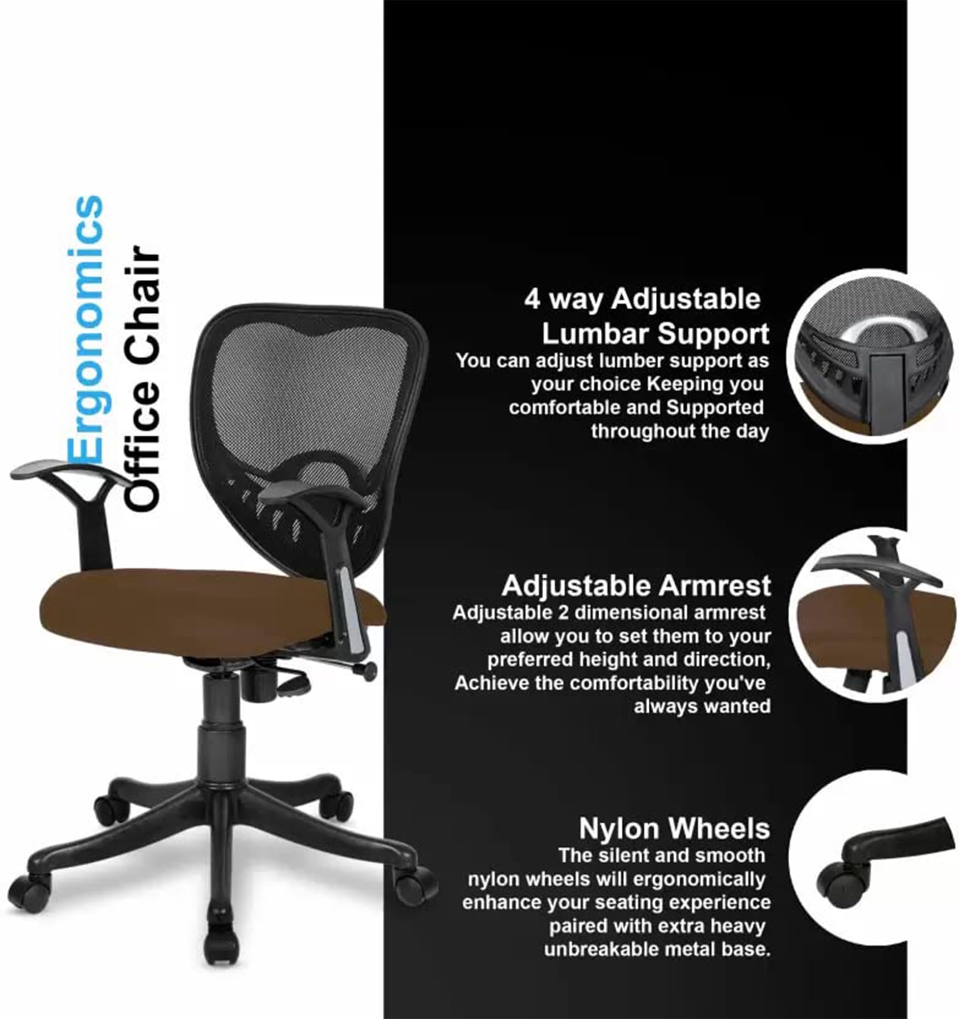This chair office is perfect for work from home because it has arms which make sure you stay comfortable all day. Our rotating chair allows easy movement so you can switch tasks without any inconvenience. It is designed for mid-back support which is great for long hours. This chair is also ideal for students who need a sturdy study chair which can keep up with their study sessions. Don't worry about long hours since it makes sure you have the comfort you need.Detailed Specifications: