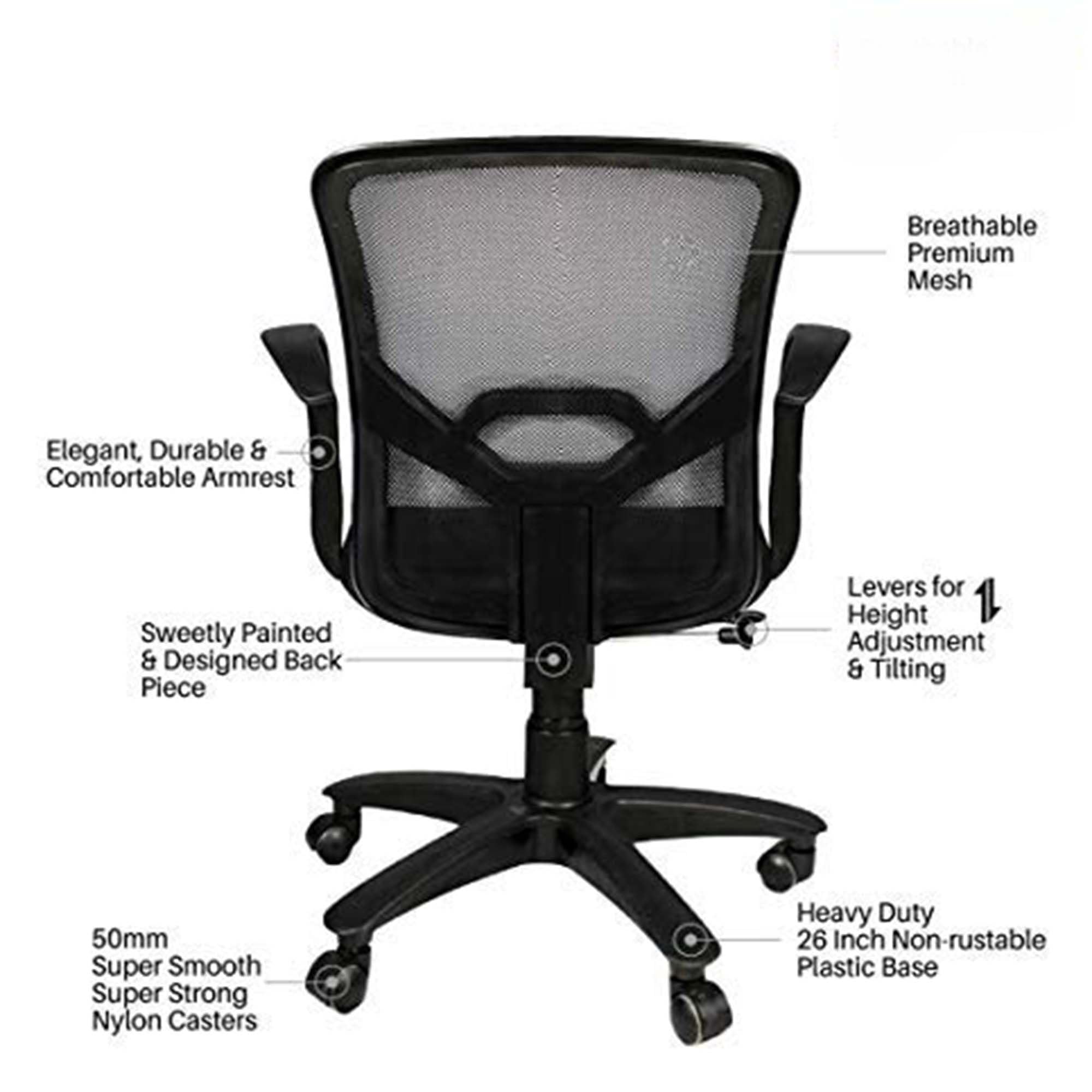 • ✅ Package Contains - (Set of 1) Office Chair | Color - Black | Material - Plastic & Meshback | Product Dimensions - 58X28X48 CM