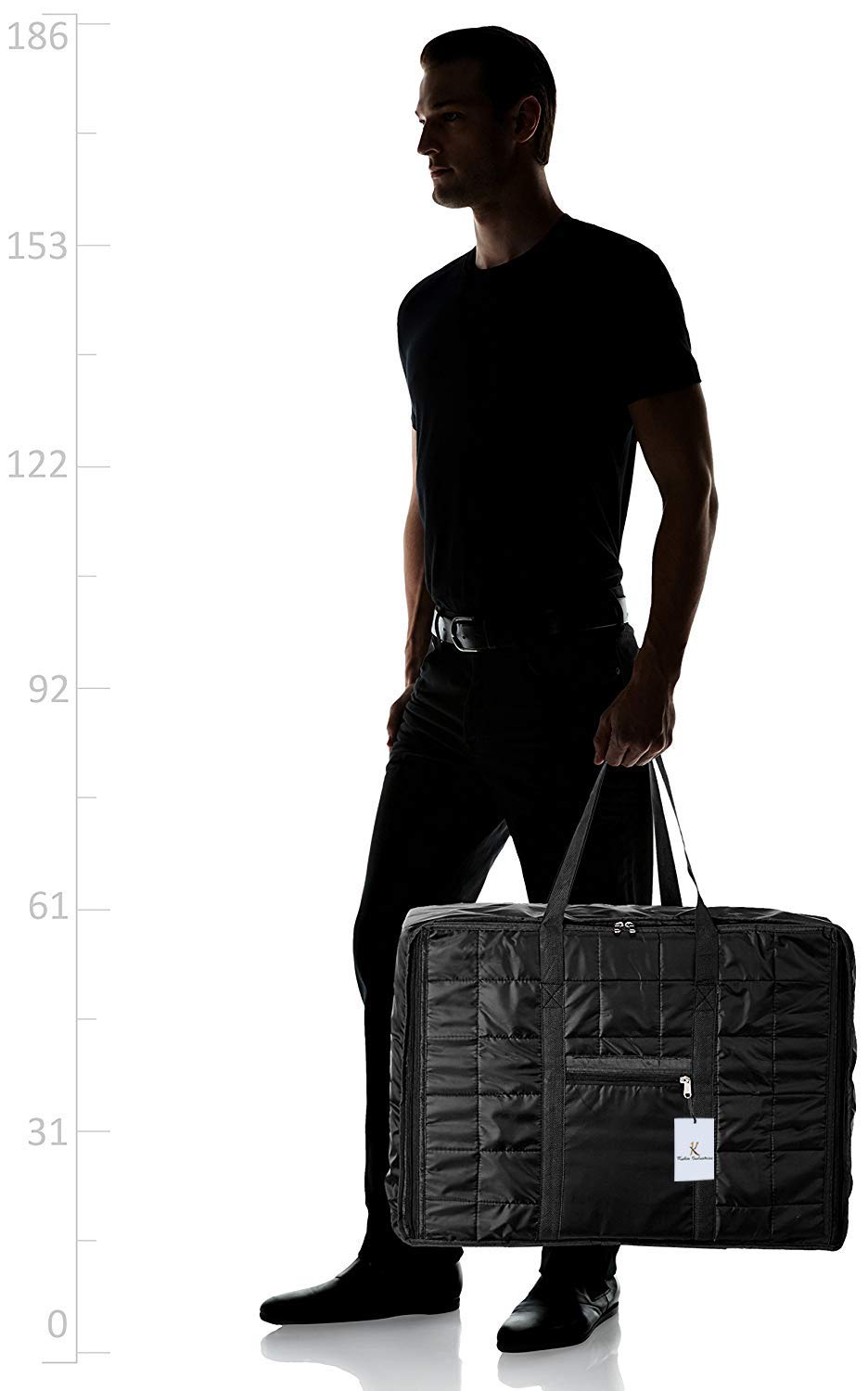 Item color : black.Made in heavy soft parachute material .Can keep blanket or it can be used as suitcase while you are in travelling.Dimension-73*54*30 cm.Long life & Excellent quality product