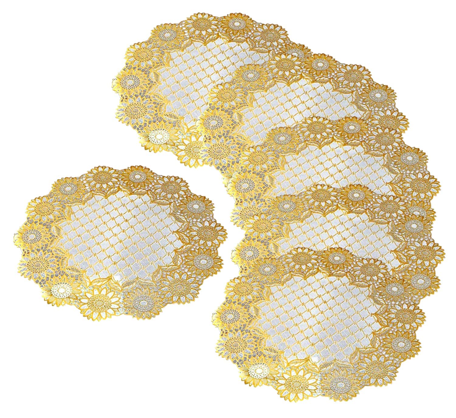 ENHANCE YOUR HOMEFashionable placemat & tea coaster set would be a perfect decoration and life quality of your home, dining hall, kitchen, hotel and business office. Top-grade exquisite placemats would be the best decoration and protection to your tables. | 100%WaterproofThe placemats & tea coaster are made of PVC, just using the wet cloth or towel to wipe off when the table mats hava some liquids in it, or go head to wash it after you finished a BBQ or meal time. | WASHABLEA damp cloth can directly wipe off the food residue left on the placemat. If it is a sauce-like stain, please rinse with water or clean the gap of the placemat with brush,No machine wash.It will dry quickly because of the non-absorbent material. | HEAT RESISTANCEThe placemat can withstand the temperature well. Using our placemat can protect your table well, and there is no need to worry about the sliding of the placemat, because our newly designed texture can play Good anti-slip effect. |