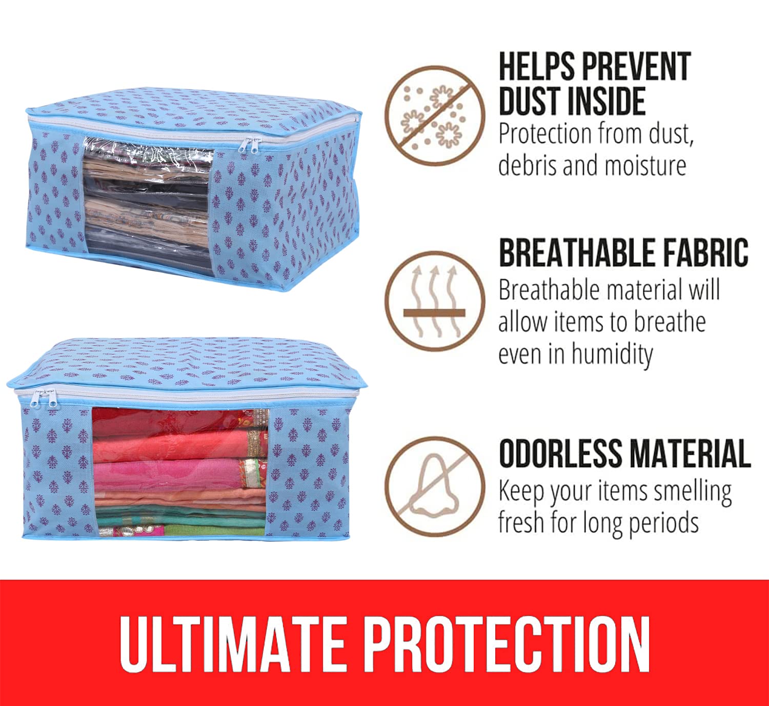 Kuber Industries These Saree Cover for storing your costly sarees. Perfect option for storing in your wardrobe or using it while travelling, helping you to keep your sarees or other dresses in a separate cover from other items in your luggage. These Saree Cover is made from high quality durable Non Woven. Long life High quality saree cover for organizing your costly and favorite sarees. This saree cover transparent, you can easily see your clothes. This saree covers are Lightweight and Portable, easily Move to Shelves, Closets, Wardrobe etc. Fold Away or Collapse Flat Under Bed or in Drawers When Not in Use. Easy To clean or hand wash fabric with and water.Detailed Specifications: