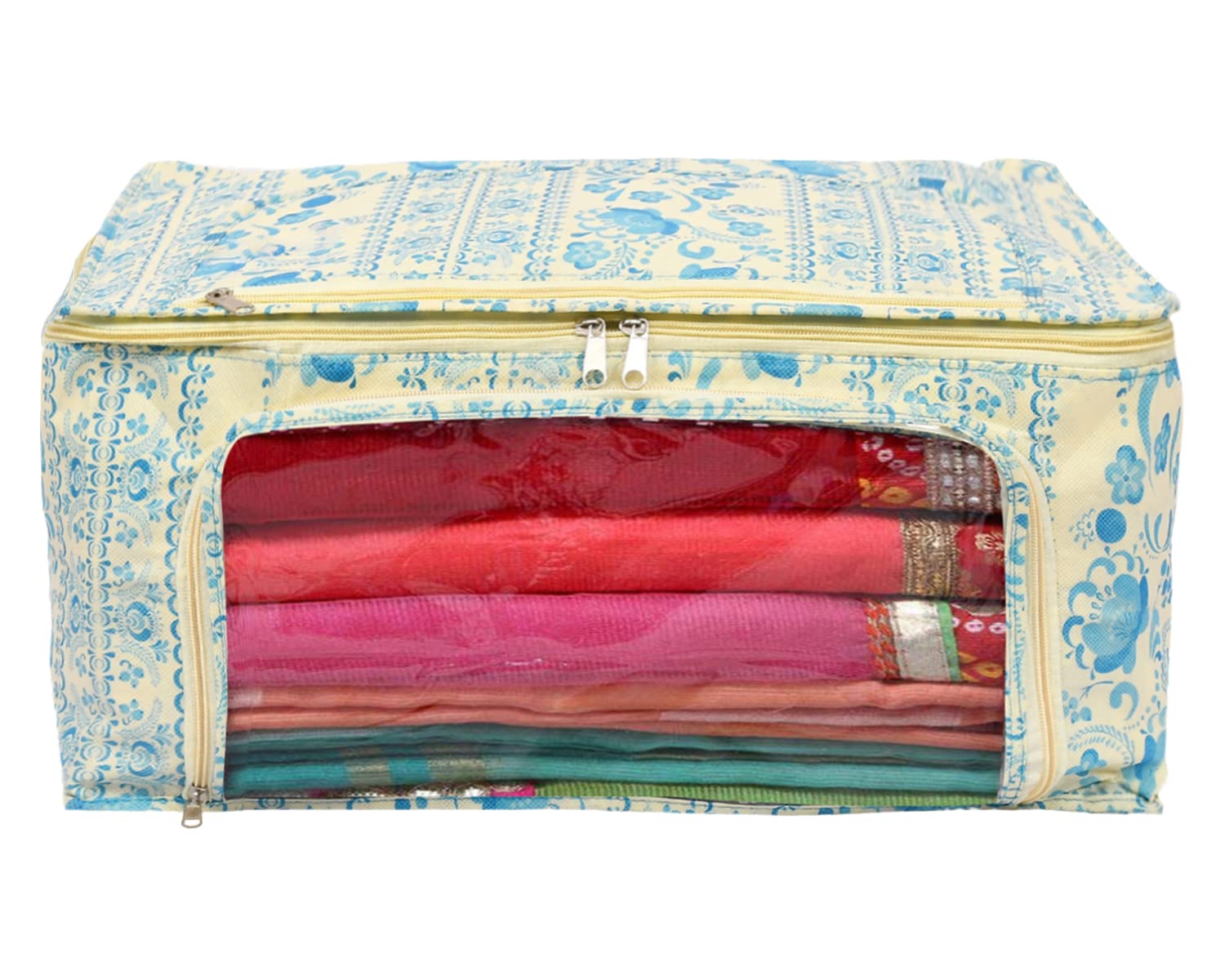 Kuber Industries cloth organizer great organizing companion for your clothes in the wardrobe that keeps your clothes well maintained in one place. It also saves your efforts for finding Saree at the right time. Ideal for Storing saree, lehenga, suits, comforters, blankets, clothes, pillows, toys etc. To protect your precious sarees we have come up with Non-Woven fabric which is currently the highest standard in the saree cover / saree bag market , Long life saree cover bag for organizing your costly and favorite sarees. The High quality zip design ensures that the chances of a zip failure is minimum,Zipper for easy opening and closing,. Can keep sarees, suits, cloth cover, shirts ,To ensure that our customers never face a problem with the zippers in the saree cover / saree bag we have gone a step ahead in introducing double zipper. This saree covers are Lightweight and Portable, easily Move to Shelves, Closets, Wardrobe etc—Quickly Pack/Unpack between Seasons, Traveling, Moving, or as Needed. Fold Away or Collapse Flat Under Bed or in Drawers When Not in Use.Detailed Specifications: