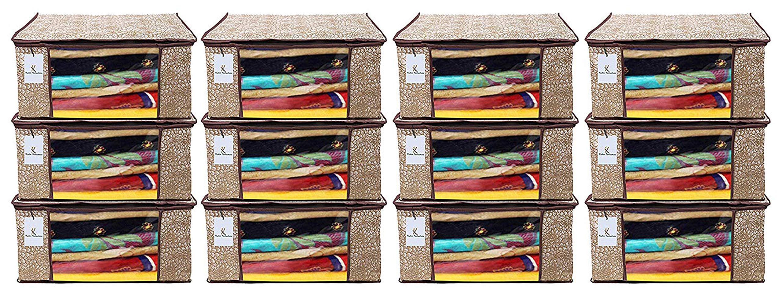 Made from durable, wear and tear-resistant non-woven fabric. Attractive colour and design. Can keep upto - 10 to 15 sarees. Lightweight and flexible saree covers. Carefully stitched to offer additional strength. Transparent see-through window for easy identification of contents. Durable zipper for easy opening and closing. Long life high quality saree cover bag for organizing your costly and favourite sarees. Package contents: 12 pieces saree covers. Colour- golden brown, flower design . Made from durable, wear and tear-resistant non-woven fabric. Can keep upto - 10 to 15 sarees. Lightweight and flexible saree covers. Carefully stitched to offer additional strength. Transparent see-through window for easy identification of contents. Durable zipper for easy opening and closing. Long life high quality saree cover bag for organizing your costly and favourite sarees.Detailed Specifications: