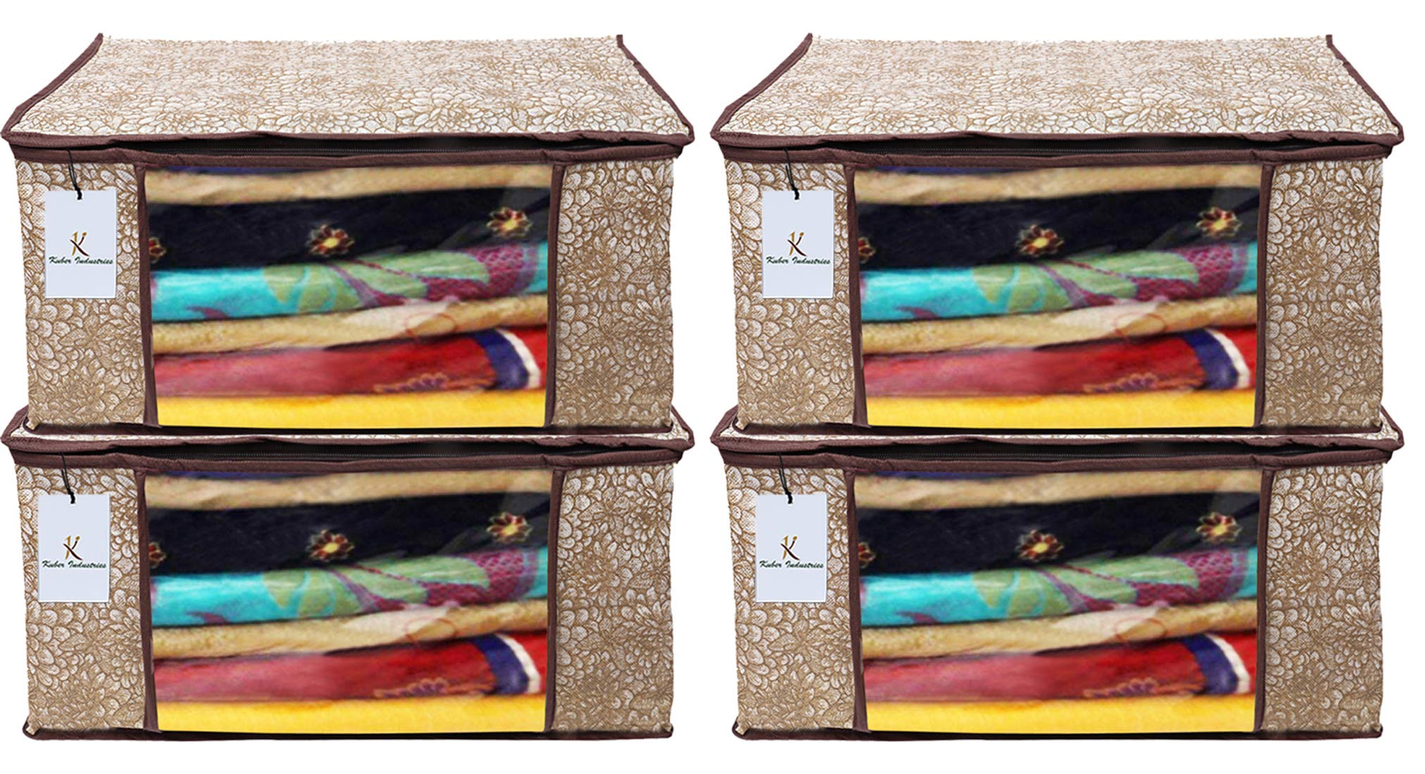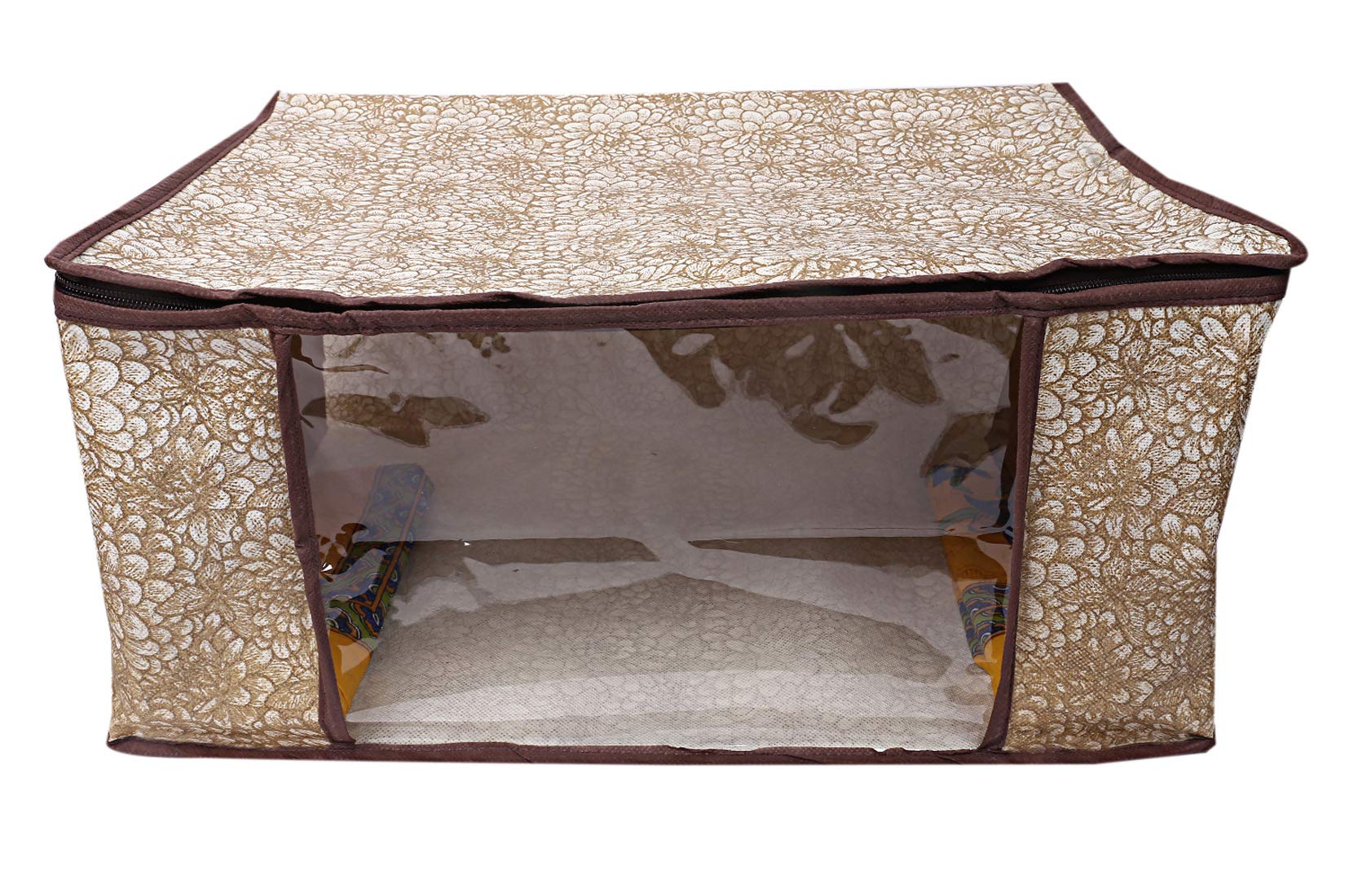 Made from durable, wear and tear-resistant non-woven fabric. Attractive colour and design. Can keep upto - 10 to 15 sarees. Lightweight and flexible saree covers. Carefully stitched to offer additional strength. Transparent see-through window for easy identification of contents. Durable zipper for easy opening and closing. Long life high quality saree cover bag for organizing your costly and favourite sarees. Package contents: 4 pieces saree covers. Colour- golden brown, flower design . Made from durable, wear and tear-resistant non-woven fabric. Can keep upto - 10 to 15 sarees. Lightweight and flexible saree covers. Carefully stitched to offer additional strength. Transparent see-through window for easy identification of contents. Durable zipper for easy opening and closing. Long life high quality saree cover bag for organizing your costly and favourite sarees.Detailed Specifications: