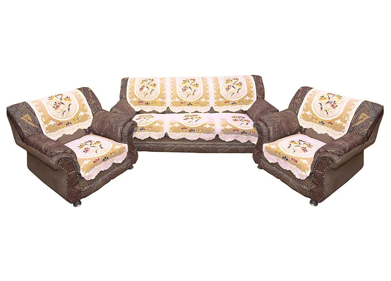 | Included Components : | Package Content 3 long back cover for 3 seater sofa 3 long seat cover for 3 seater sofa 2 seat back cover for single seat sofa 2 seat cover for single seat sofa 6 Pc Arm rest cover |
