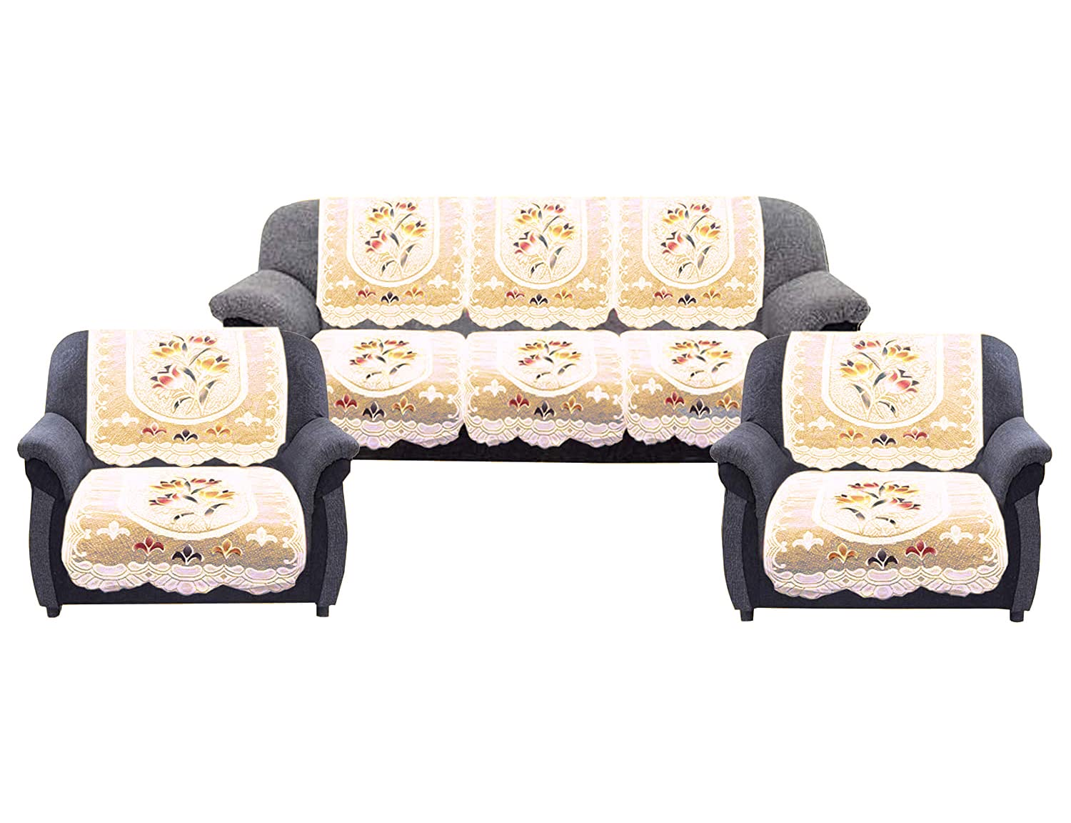 Kuber Industries Flower Design Cotton 5 Seater Sofa Cover with 6 Pieces Arms Cover|Use Both Side|Living Room|Drawing Room|Pack of 16 (Cream)