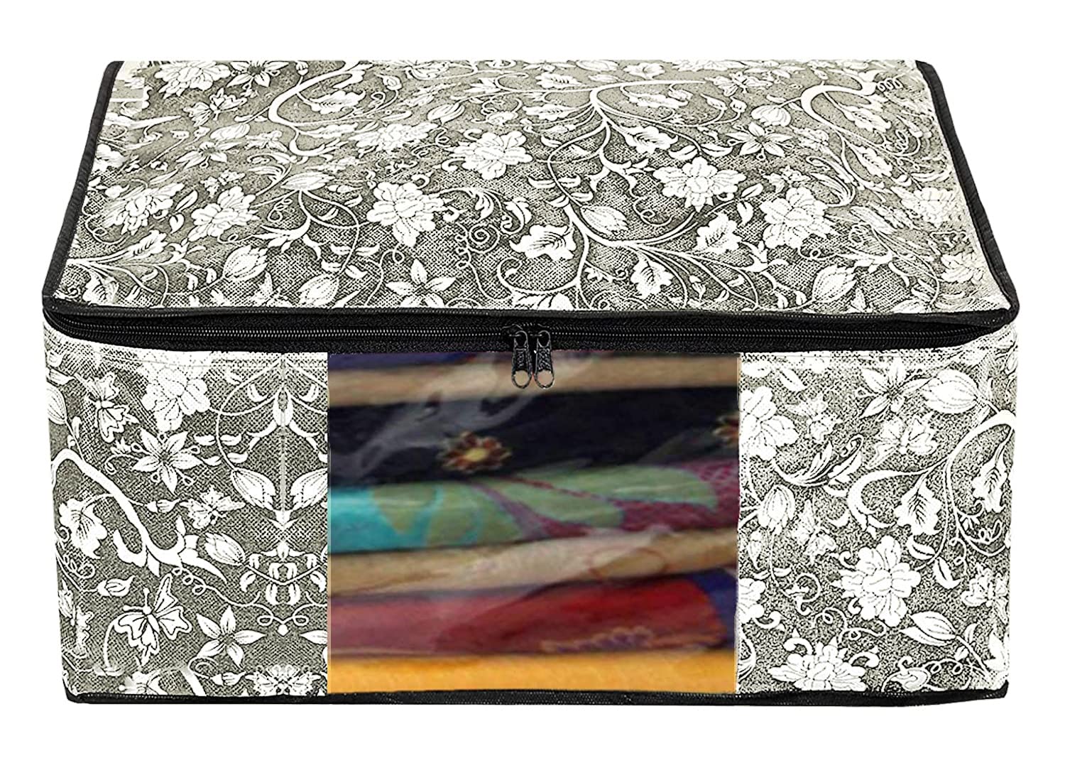 Kuber Idnustries saree/cloth organizer perfect to keep your heavy sarees & other cloth safe and maintain their elegance and new look, the non-woven large saree cover bag with transparent window not only helps you keep your sarees safe from external environment but also ensures that the quality of the saree is maintained. Built and designed with three different layers, it comes with two zippers and a transparent window that eases overall use of the bag. Uniquely designed to prevent kept clothes from insects, the bag also prevents your sarees from moisture and dust.
