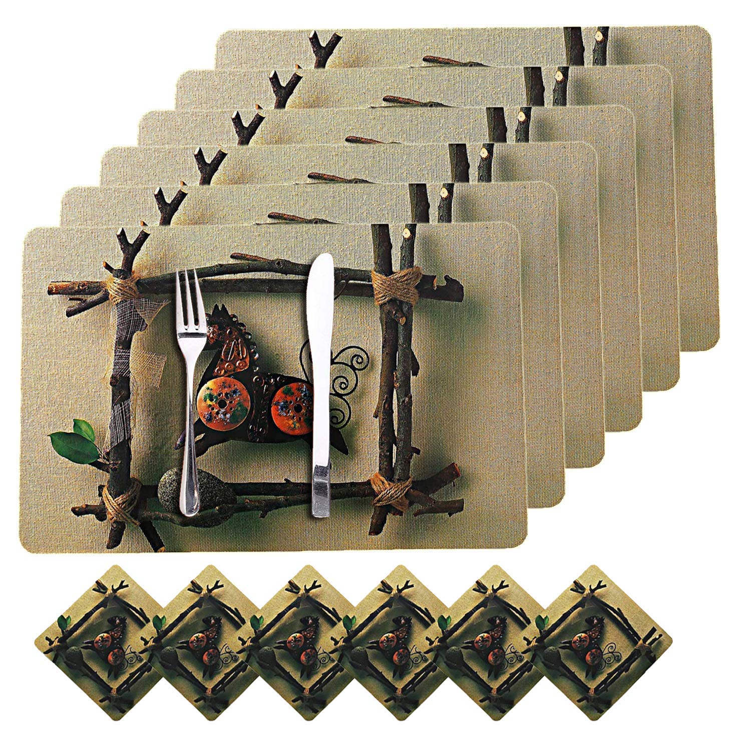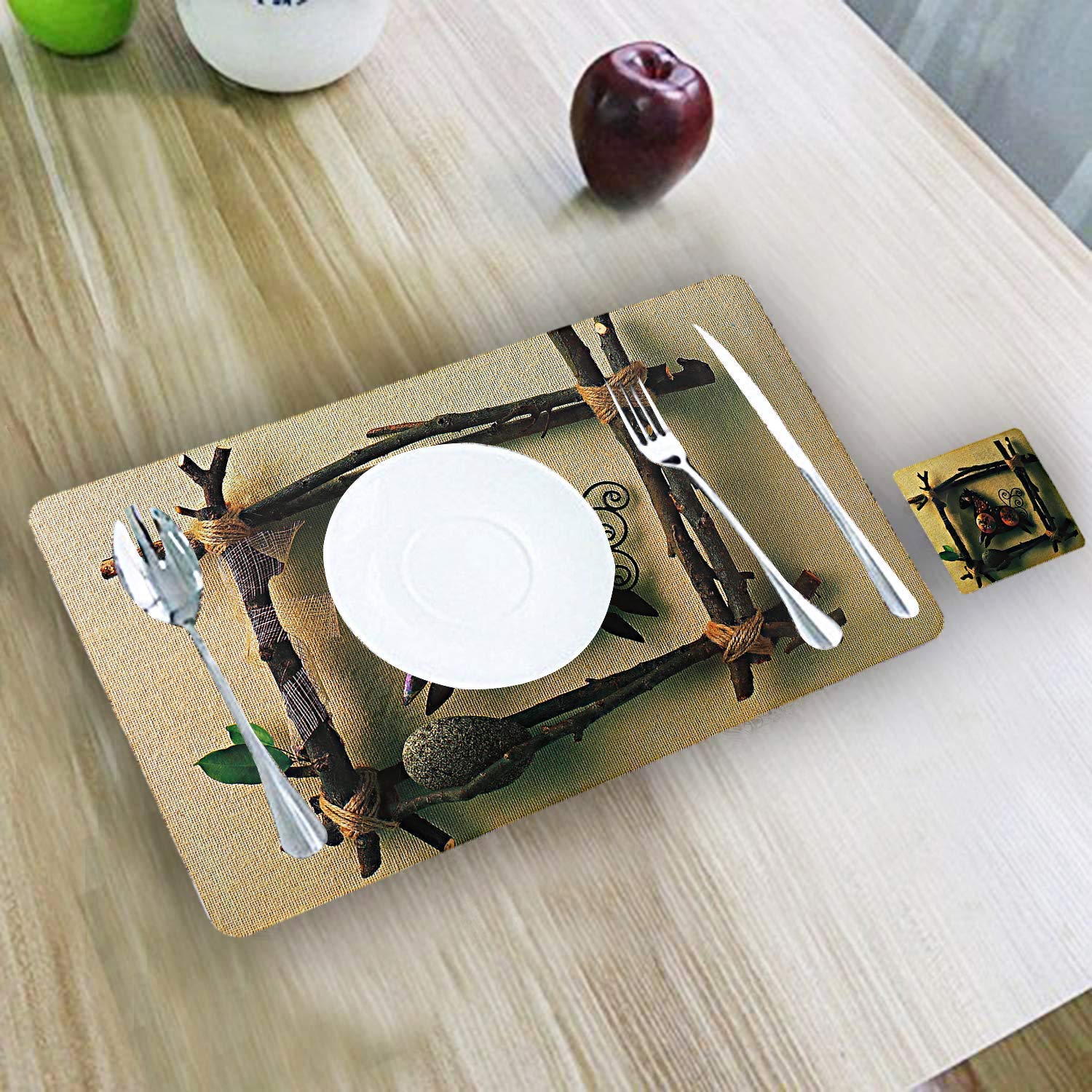 ENHANCE YOUR HOMEFashionable placemat & tea coaster set would be a perfect decoration and life quality of your home, dining hall, kitchen, hotel and business office. Top-grade exquisite placemats would be the best decoration and protection to your tables. | 100%WaterproofThe placemats & tea coaster are made of PVC, just using the wet cloth or towel to wipe off when the table mats hava some liquids in it, or go head to wash it after you finished a BBQ or meal time. | WASHABLEA damp cloth can directly wipe off the food residue left on the placemat. If it is a sauce-like stain, please rinse with water or clean the gap of the placemat with brush,No machine wash.It will dry quickly because of the non-absorbent material. | HEAT RESISTANCEThe placemat can withstand the temperature well. Using our placemat can protect your table well, and there is no need to worry about the sliding of the placemat, because our newly designed texture can play Good anti-slip effect. |