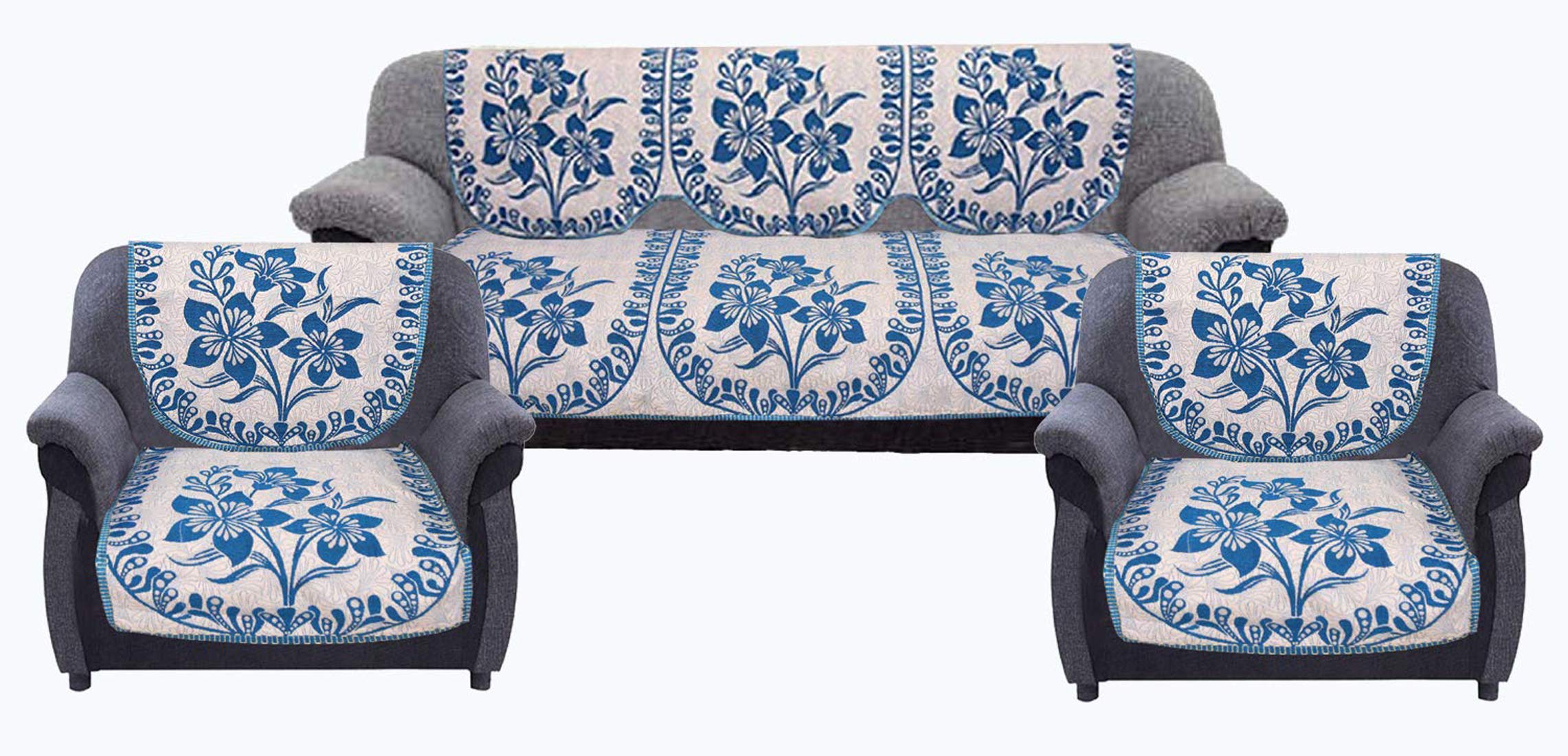 1 long back cover for 3 seater sofa, 1 long seat cover for 3 seater sofa, 2 back covers and 2 seat cover for single seat sofa. Made in Velvet material. Protect: Our stylish furniture slip cover protects furniture from stains, dust, dirt and pet hair. Great for homes, offices with babies, kids, dogs and cats. Perfect fit: Fits perfectly on each and every kind of sofa, made from material. Easy care: Machine wash and hand washable (cold) and dry (cool). Dimensions in cm (lxw): Sofa seat cover- 178x74, sofa back cover- 178x74, chair seat cover- 74x61, chair back cover- 74x61,.Detailed Specifications:
