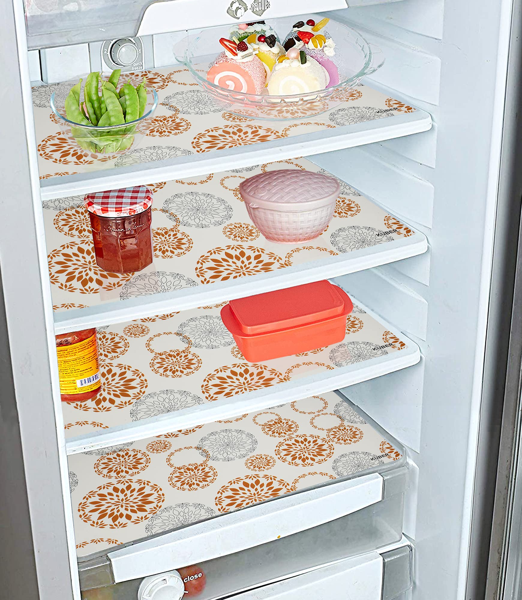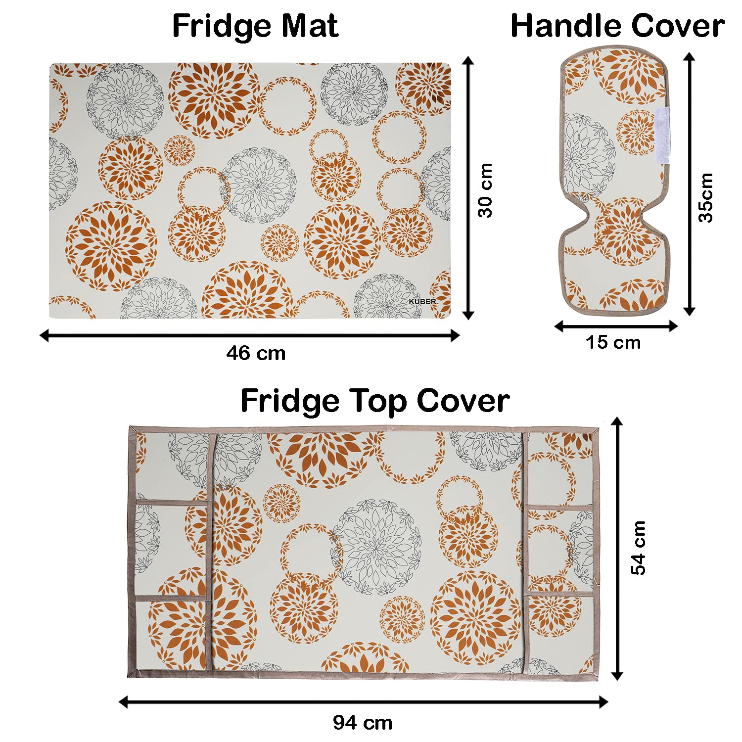 Made from durable quality PVC, the Kuber Industries Fridge Organiser Set is a multipurpose set tHat is long-lasting. The set comes with a fridge cover tHat is durable and protects the fridge from dust and stains. It also Has a Velcro Handle cover tHat makes for a tight fit. The Amazon Brand – Kuber Industries Fridge Organiser Set comes with an anti-slip fridge mat tHat protects the shelves from and is easy to clean. This set comes in an attractive looking brown-coloured circular design tHat enHances the décor of your fridge and kitchen.Detailed Specifications: