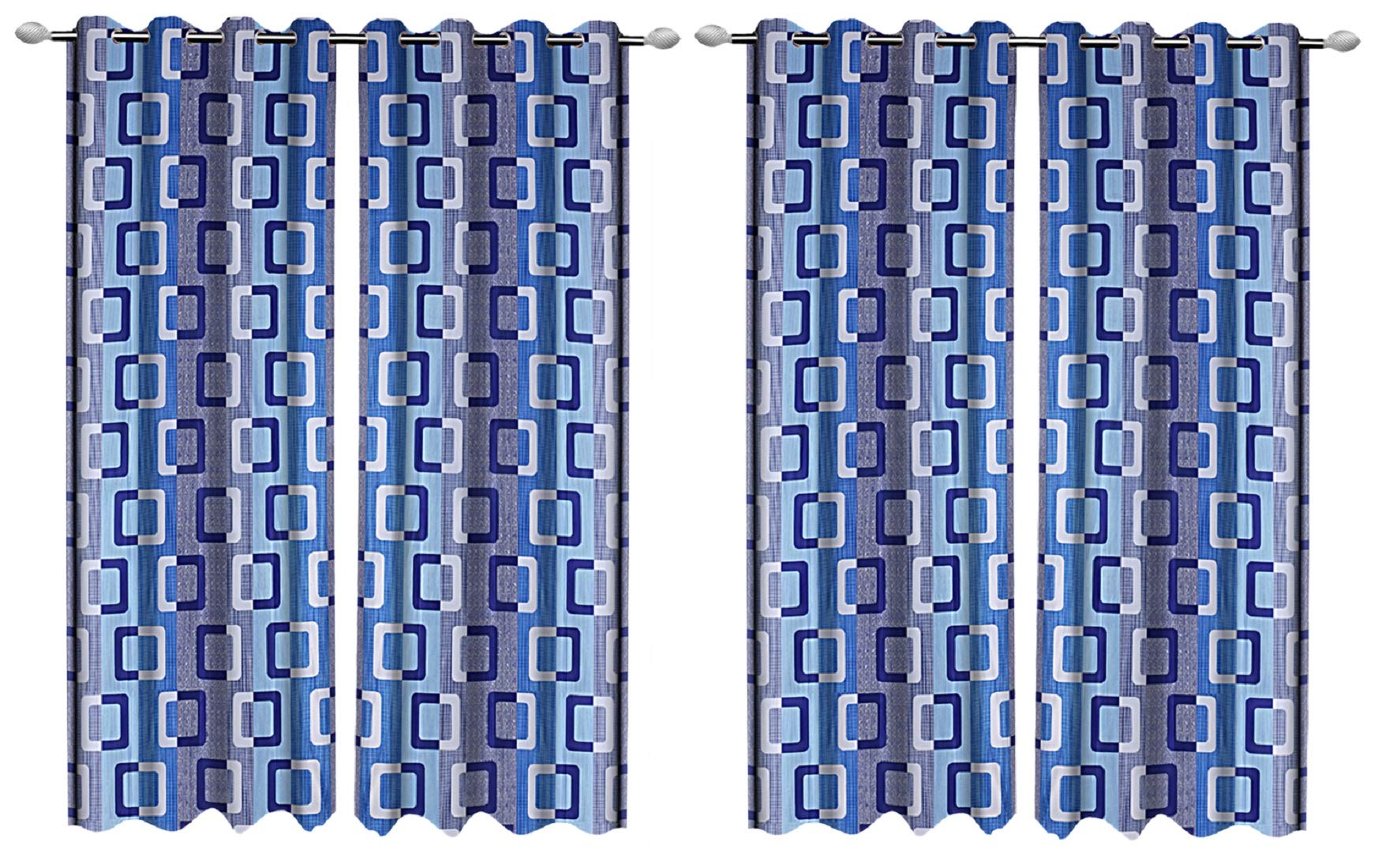 Kuber Industries Geometric Design 6 Pieces Polyester Eyelet Door Curtain 7 Feet (Blue)-CTKTC30237