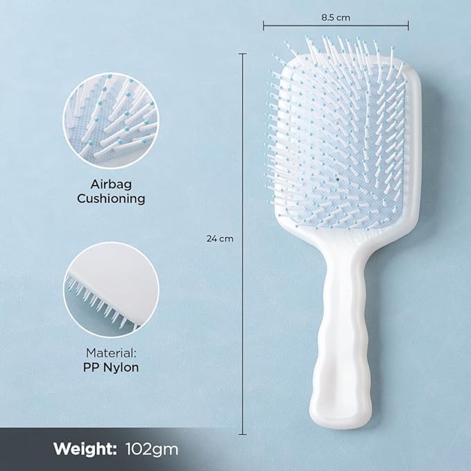 The Kuber Industries Hair Brush is a reliable tool for everyday hair care. With its soft bristles, it gently detangles knots and smoothens hair, making it easy to style. The comfortable grip and easy-to-use design ensure a hassle-free grooming experience. Whether you have wet or dry hair, this brush is suitable for all hair types, helping you achieve a neat and polished look effortlessly. Suitable for both wet and dry hair, brush promotes hair health, making it an essential part of any hair care routine.Detailed Specifications: