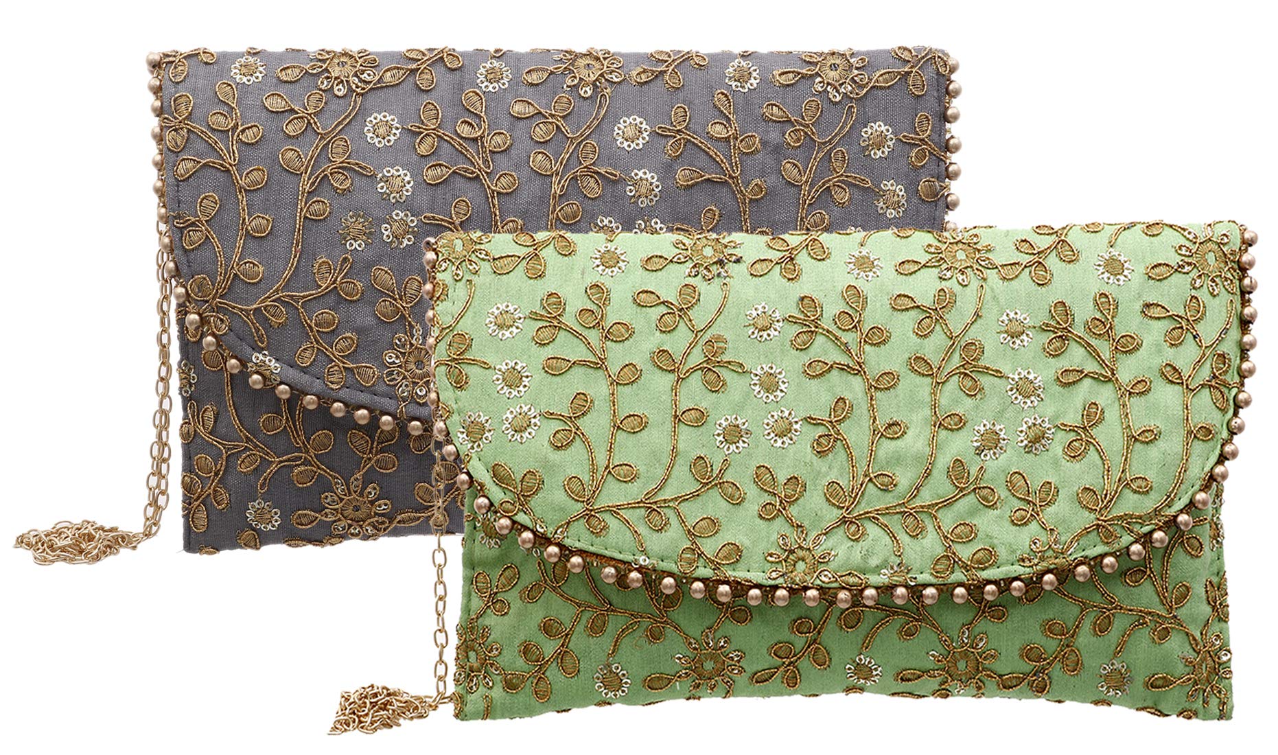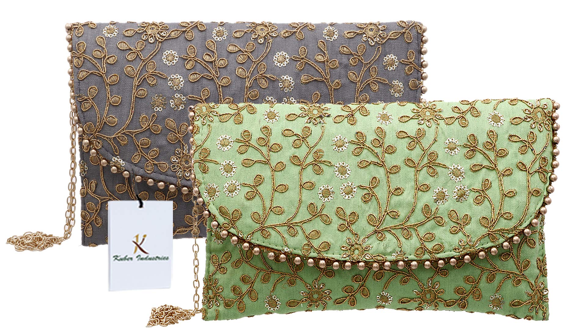 Included Components : | 2 Pieces Embroidered Party Wear Clutch Women Handbag |
