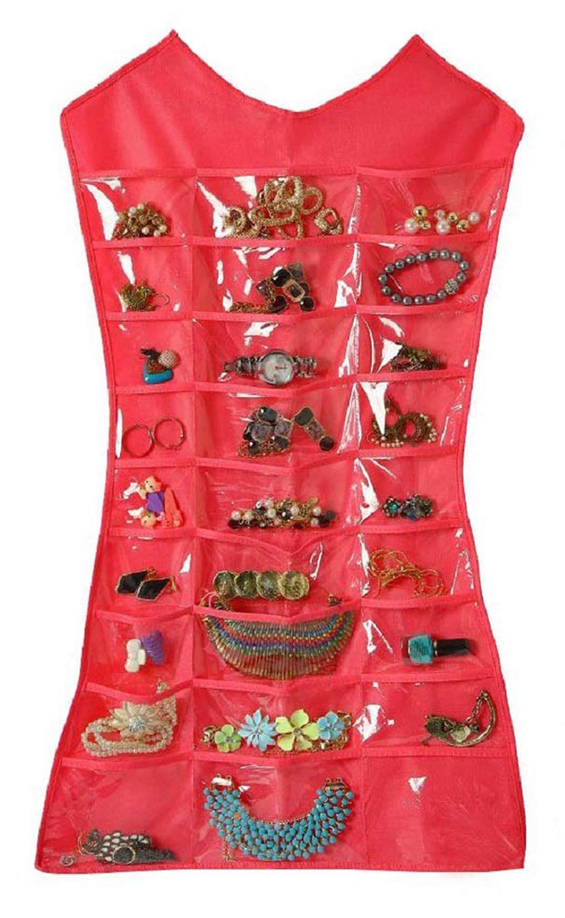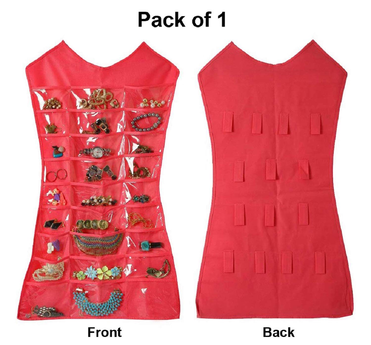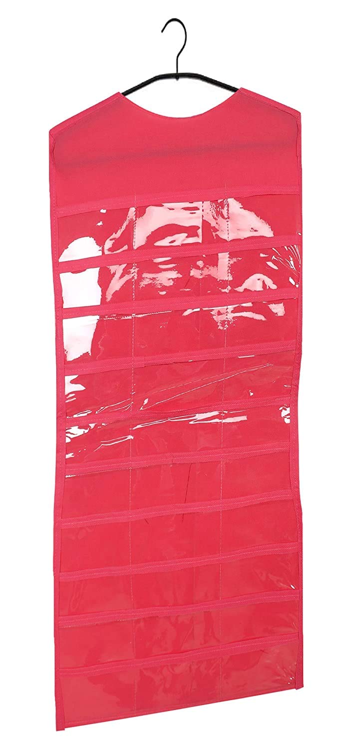 Are you always choosing the same jewelry because you've forgotten about - or can't find - the rest? Kuber Industries Dual Sides Jewellary Holder / organizer have a smart solution to organize your jewelry - check it out: One side with 30 clear pockets, another side with 13 loops/hooks Clear pockets makes it's easy to see your jewellery, cosmetics, hair and fashion accessories straps makes you don't have to worry about your long necklace getting a tangled up with one another A standard hanger needed, easily hangs as part of your closet and takes a very small space There is an opening through which to slip a hanger and a flap that covers it at the top Storage solution for jewellery, cosmetics, hair and fashion accessories, and all of life's curiosities, hide your expensive ones in clothes. Fits nicely in your closet, and each piece has its own place, so they don't get tangled (or worse, scratched or nicked!). Now it's easy to quickly find that favorite piece of jewelry, AND to keep them organized when you put them back. Our Little Dress Organizer is great for all ages and makes a great gift!! This makes it the perfect gift for your friends & family, girls & women - of all ages! And we know how important gifts are, so we go out of our way to make sure they arrive on time.Kuber Industries is a customer-loved brand that brings you everything you need to make a house a home. Right from nifty storage solutions to smart kitchen essentials, our products are known for their premium and durable quality.