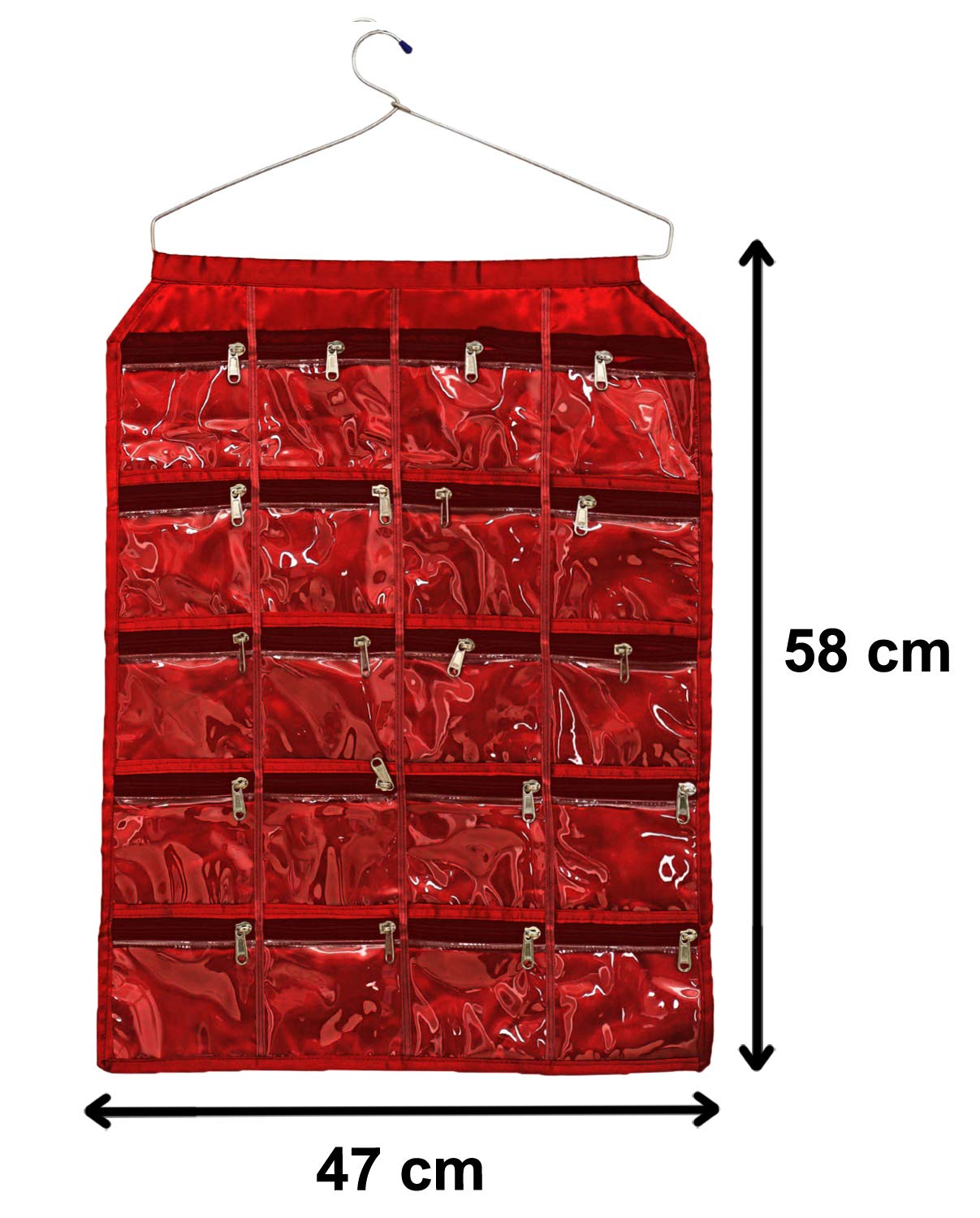 Kuber Industries Hanging Jewellery Organizer with 20 Zipper Pockets,Women Girl Storage Bag for Earrings Necklace Bracelet Ring Accessory with Hanger(Maroon)Detailed Specifications: