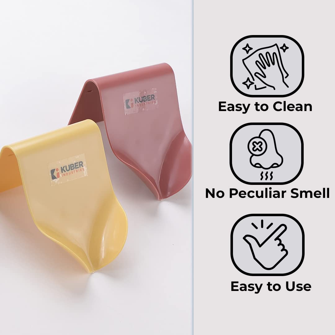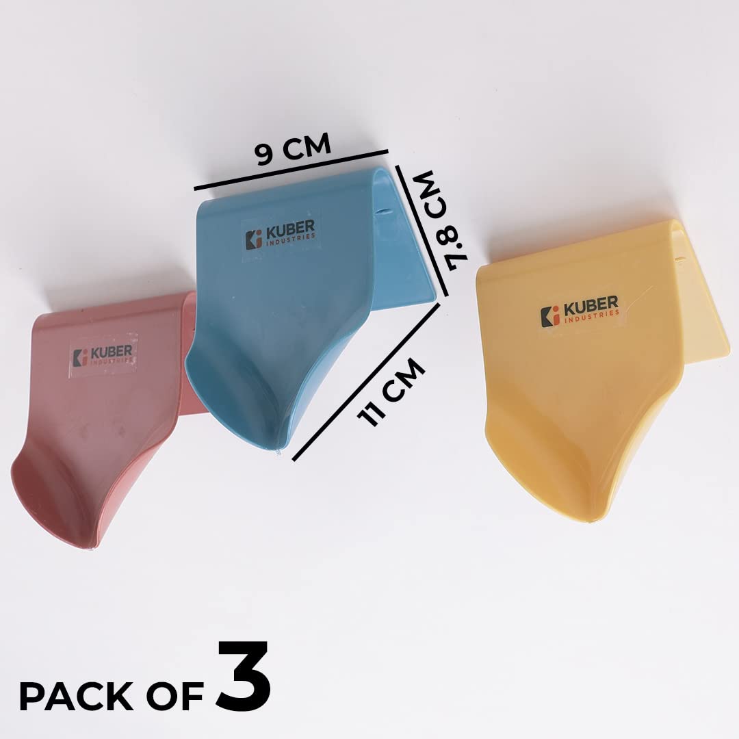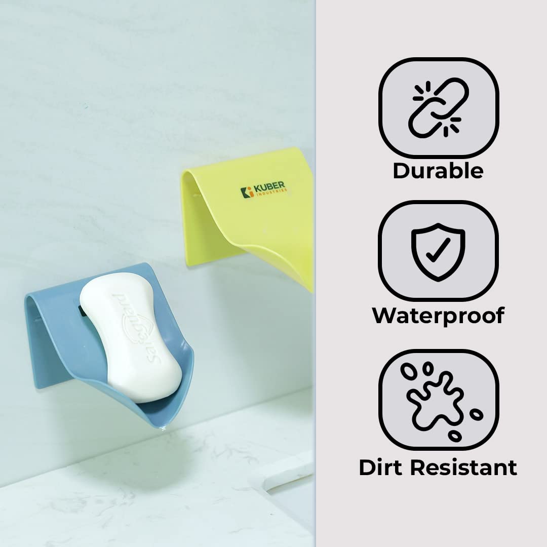 Kuber Industries hanging soap holder for bathroom is crafted with supreme quality PP material which makes it strong and durable. It is waterproof, dirt-resistan,t and easy to clean with no peculiar smell. The soap case comes in a pack of 3 with exciting multi-color options of Red, Blue & Yellow making them the perfect decorative bathroom accessories. They take up minimal space on the wall, measuring 7.8 x 9 x 11CM and are easy to install too. With the help of the self-adhesive sticker, they can be installed on the wall surface of your choice without the hassle of loud drilling or any other hardware within seconds. Place on the edge of your shower st,all, bath sink or kitchen sink. The soap stand is compatible with most commercial & handmade bar soaps and can also be used to store your other bath products such as loofahs and brushes. Adding to its functionality is the unique self drainage system that helps to prevent water accumulation and helps your soap to dry faster. Its curved edges add to both its functionality and sleek look, making them a favorite part of your bathroom hardware and accessories. | | | |