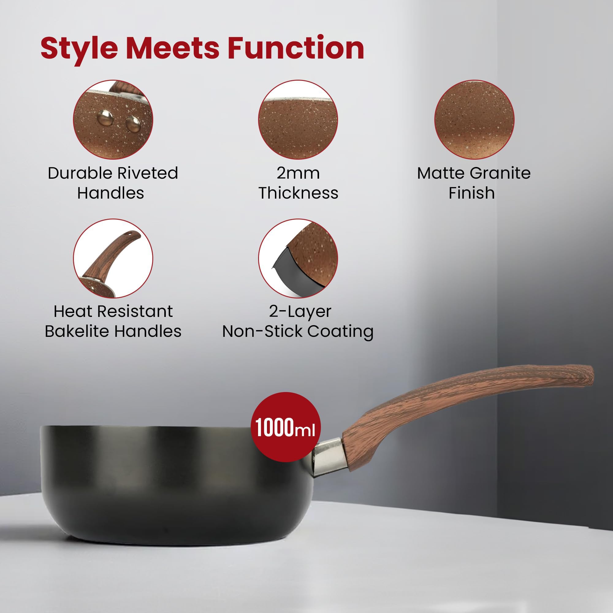 This sauce pan is designed to make your tea, coffee, or milk preparation simple because it is hard anodised and non-stick, which helps with easy cleaning. Our pan includes a heat-resistant handle, so you can safely use it on both gas stoves and induction cooktops without worry. It is made to last because the tough material ensures it can handle everyday use. This is a multipurpose kitchen tool that you can use for multiple cooking needs whenever you need it. We made sure this pan is lightweight so you can use it comfortably without any inconvenience.Detailed Specifications:
