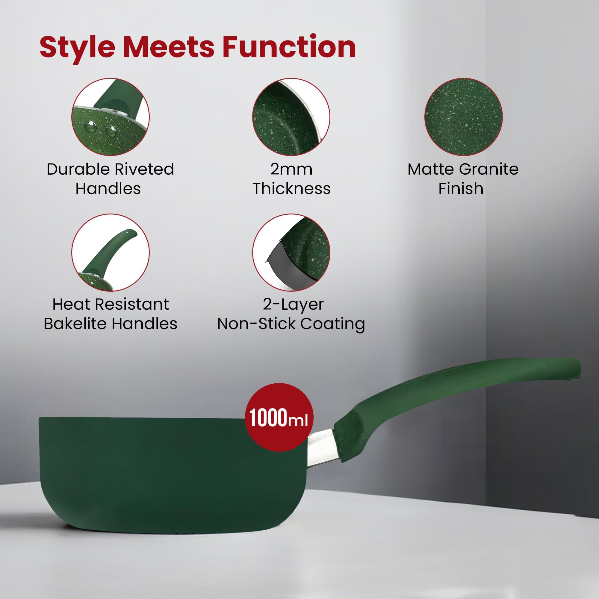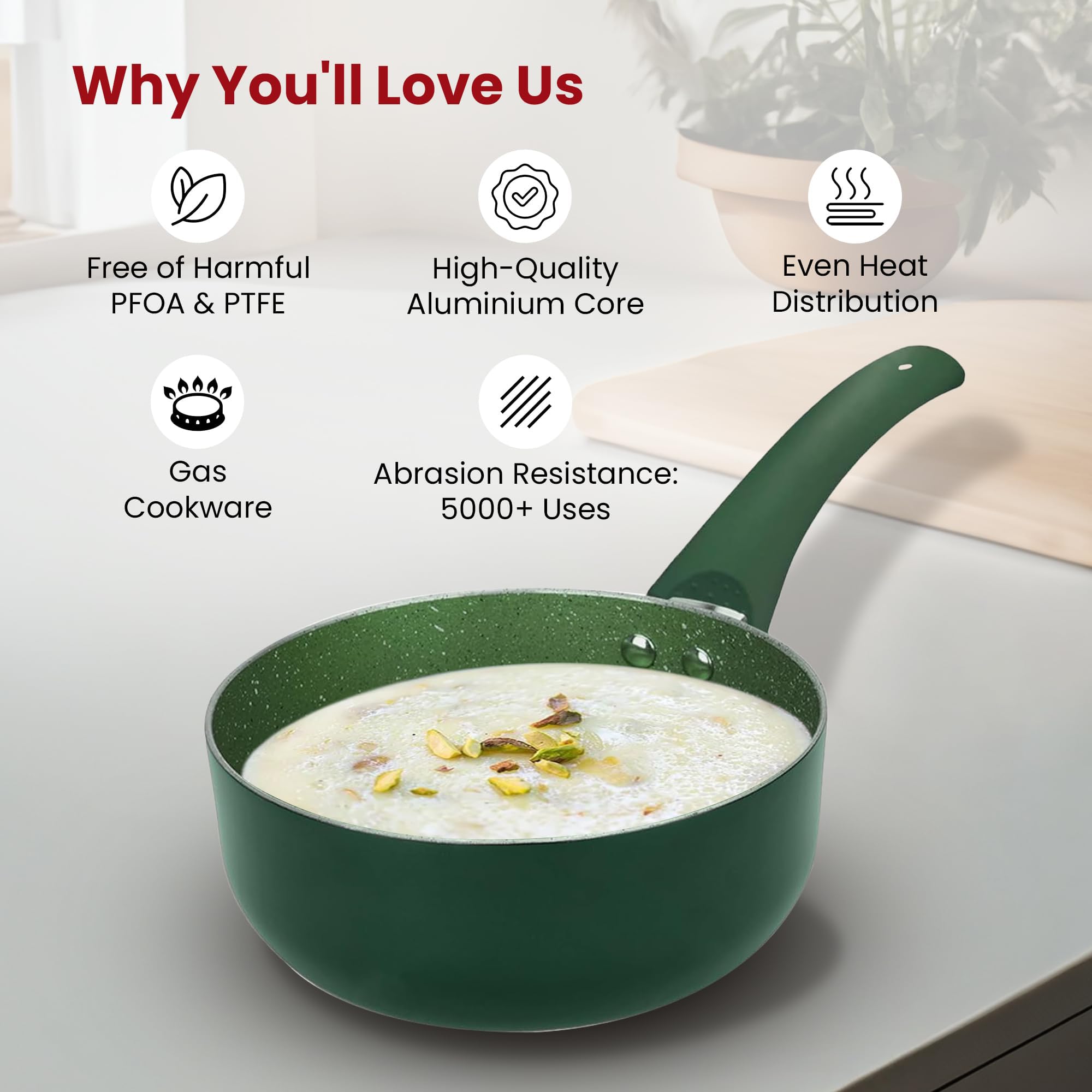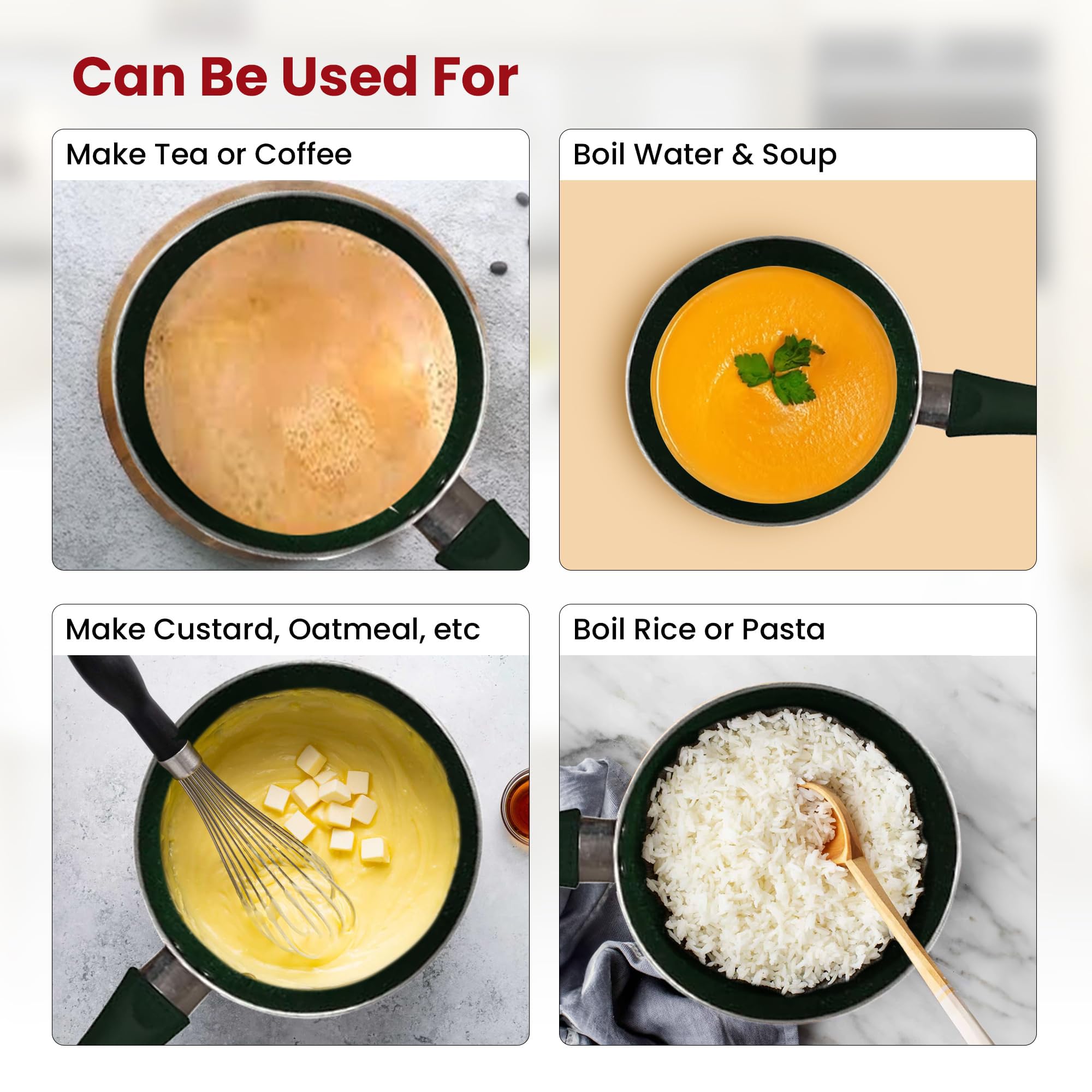 This sauce pan is designed to make your tea, coffee, or milk preparation simple because it is hard anodised and non-stick, which helps with easy cleaning. Our pan includes a heat-resistant handle, so you can safely use it on both gas stoves and induction cooktops without worry. It is made to last because the tough material ensures it can handle everyday use. This is a multipurpose kitchen tool that you can use for multiple cooking needs whenever you need it. We made sure this pan is lightweight so you can use it comfortably without any inconvenience.Detailed Specifications: