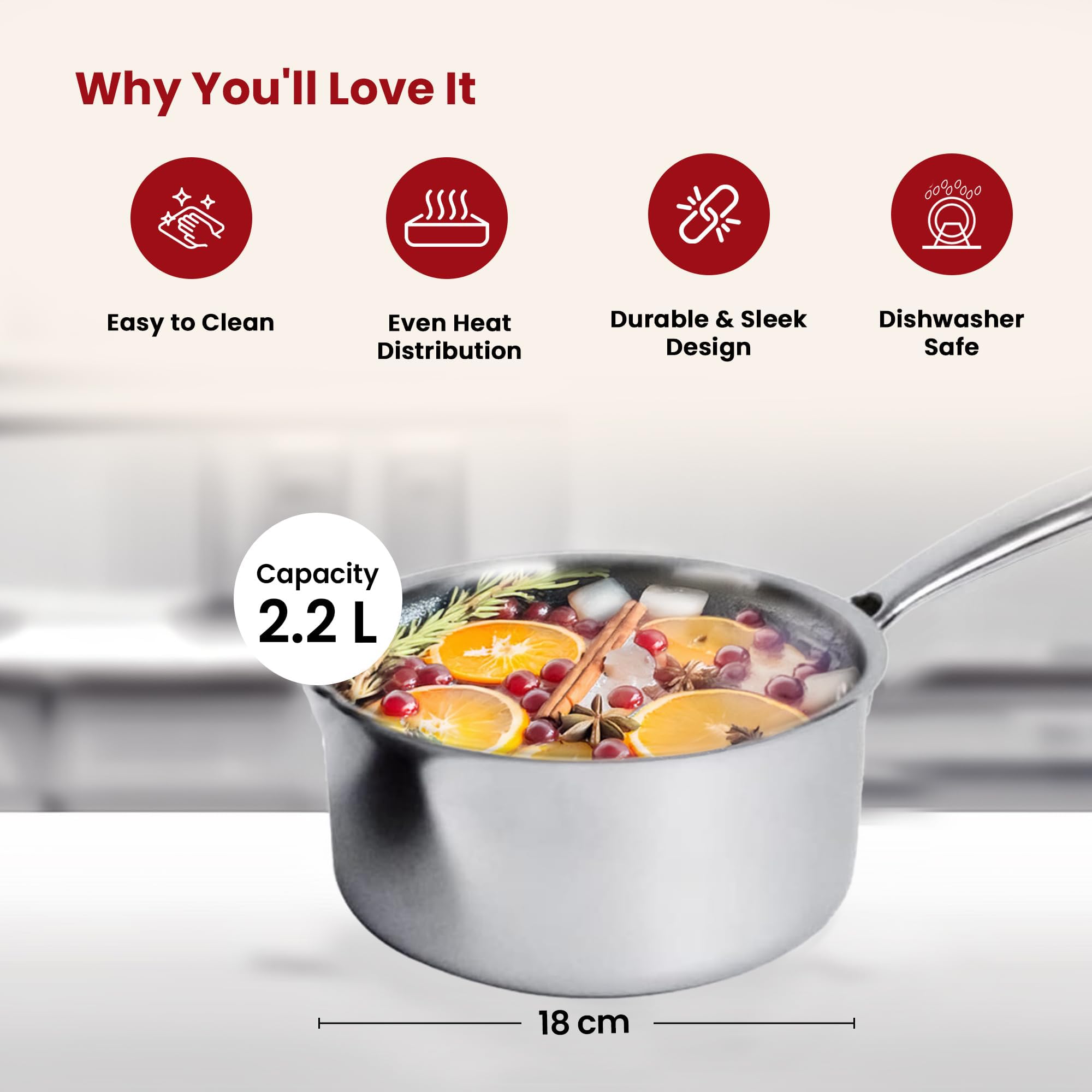 This sauce pan is designed to make your tea, coffee, or milk preparation simple because it is hard anodised and non-stick, which helps with easy cleaning. Our pan includes a heat-resistant handle, so you can safely use it on both gas stoves and induction cooktops without worry. It is made to last because the tough material ensures it can handle everyday use. This is a multipurpose kitchen tool that you can use for multiple cooking needs whenever you need it. We made sure this pan is lightweight so you can use it comfortably without any inconvenience.Detailed Specifications: