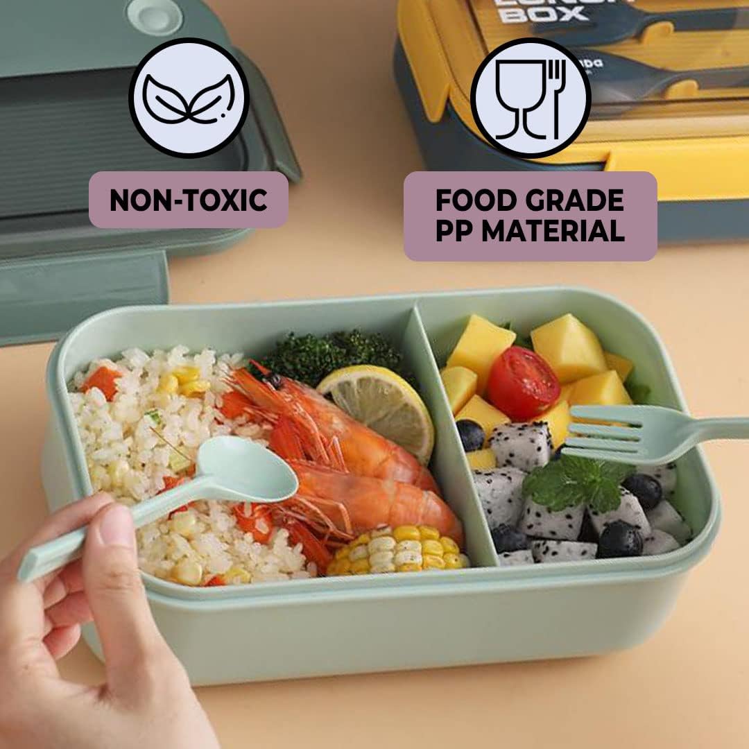 Kuber Industries Brings to you a wide range of insulated lunch box & containers to serve all your food storing needs! This premium lunch box for kids & adults alike is perfect for ensuring the ideal portion control & enabling healthy nutrition throughout the day. Made of high-quality food-grade PP plastic, this lunch box set is both multi-utility & eco-friendly. This multi-utility lunch box for school & office is equipped with a leak-proof lid that is completely leak-proof & spill-proof! This makes it the ideal choice when it comes to selecting an insulated lunch box for kids & adults, alike. Equipped with flatware for added convenience, it is an excellent kids lunch box for girls & boys, alike! It has been thoughtfully designed to be both, a dishwasher & microwave-safe lunch box for kids. Simply use the tray to heat your food to the temperature of your liking! The stylish design of this lunch box for girls, boys, women & men alike can help up your style quotient in front of your office colleagues & friends! The reusable & eco-friendly feature of this lunch box makes it the right choice for both you and the environment!Detailed Specifications: