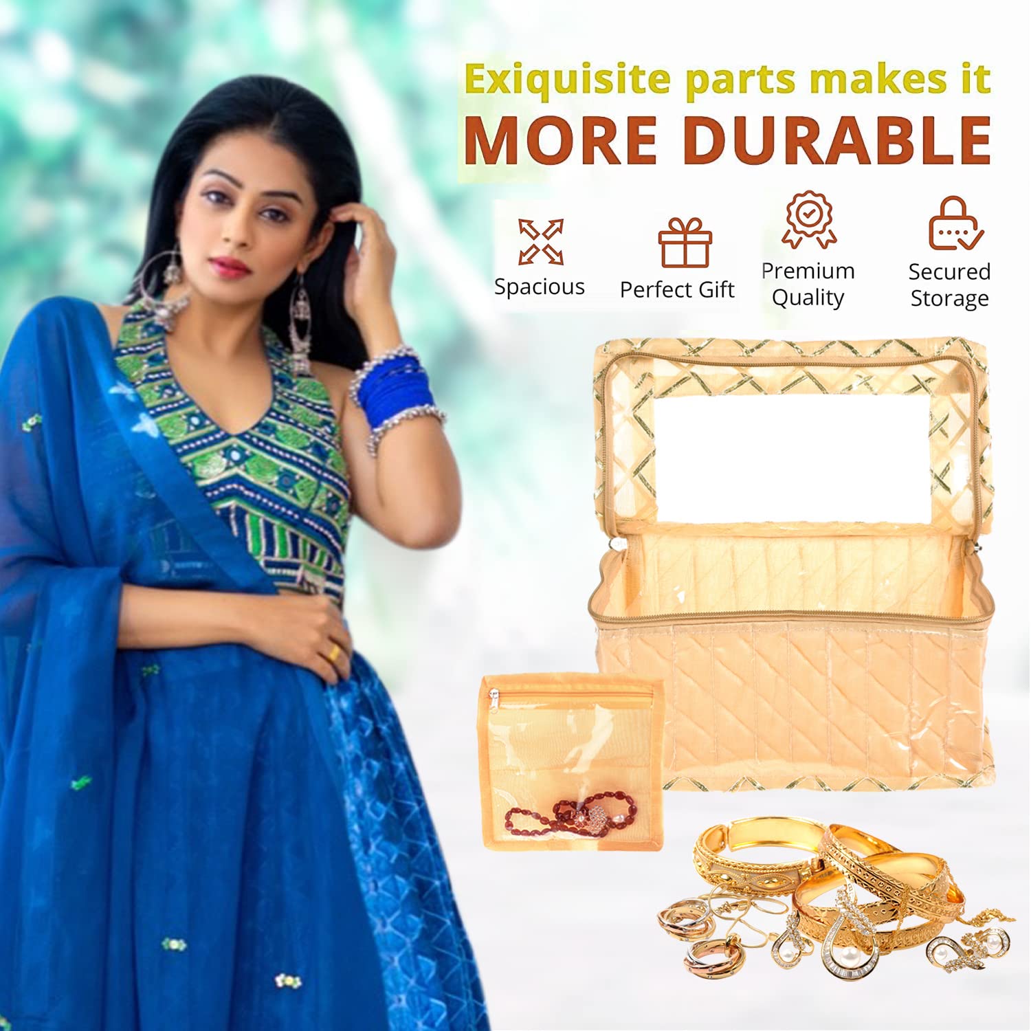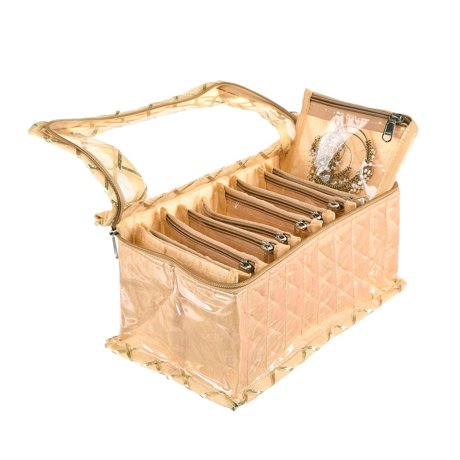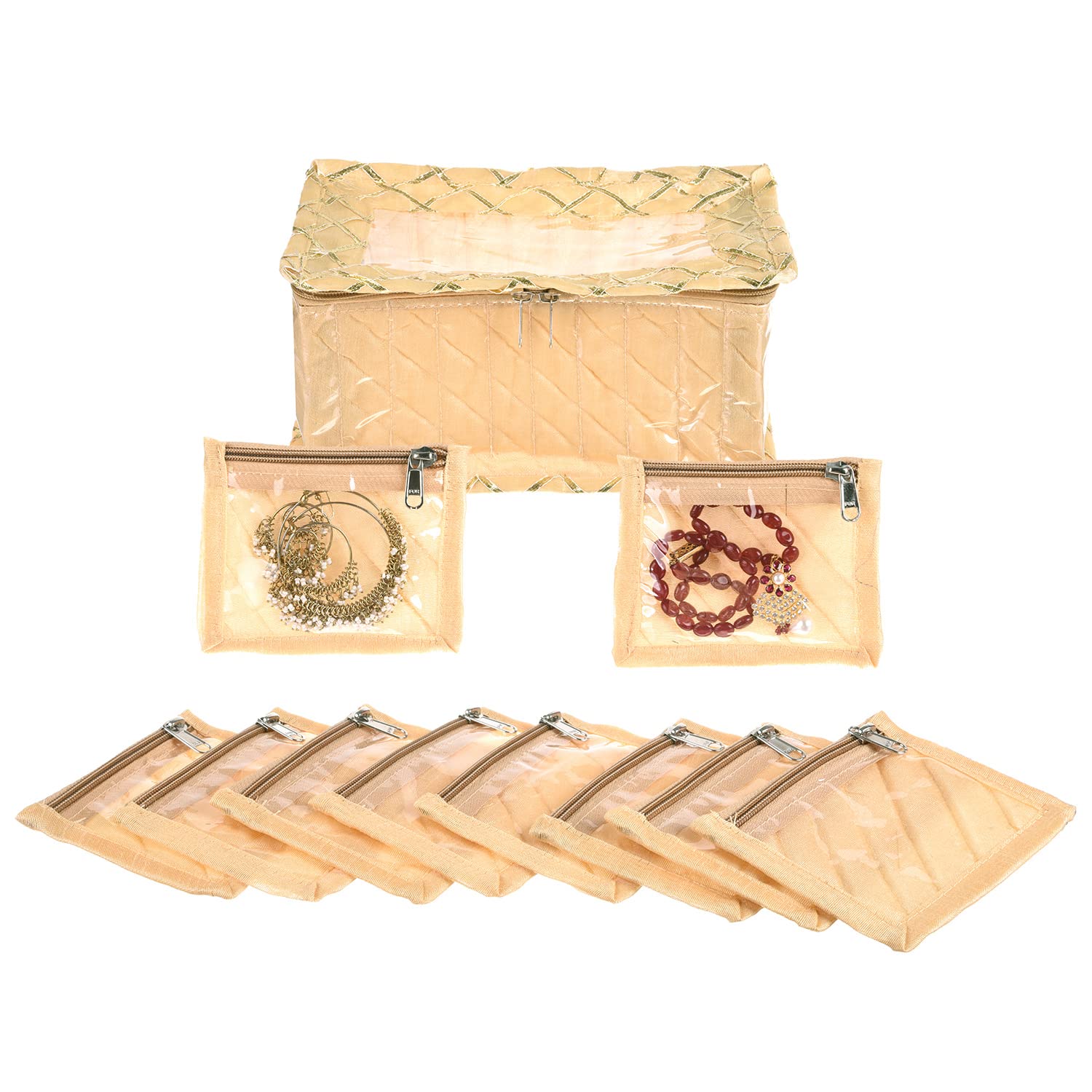 Kuber Industries has always been coming up with Innovative Products to take care of your family, we offer a wide range of our Products that Inspires the customers to choose from a variety of options. Maybe you all must have liked our products. That's why we are continuously providing quality products to maintain the satisfaction of the customers, in this sequence we are continuously moving forward. Similarly, we present to you the jewelry box that comes with 10 transparent pouches to keep your expensive jewelry safe and a box for ultimate storage, which can be used to store jewelry items like necklaces, earrings, bracelets, rings and more Can be used to store and protect small trinkets. This is the best option to use while traveling and will help you keep your heavy jewelry in a separate cover from other items in your luggage. Jewelry bags are commonly used for travel or at home to keep jewelry organized.Detailed Specifications: