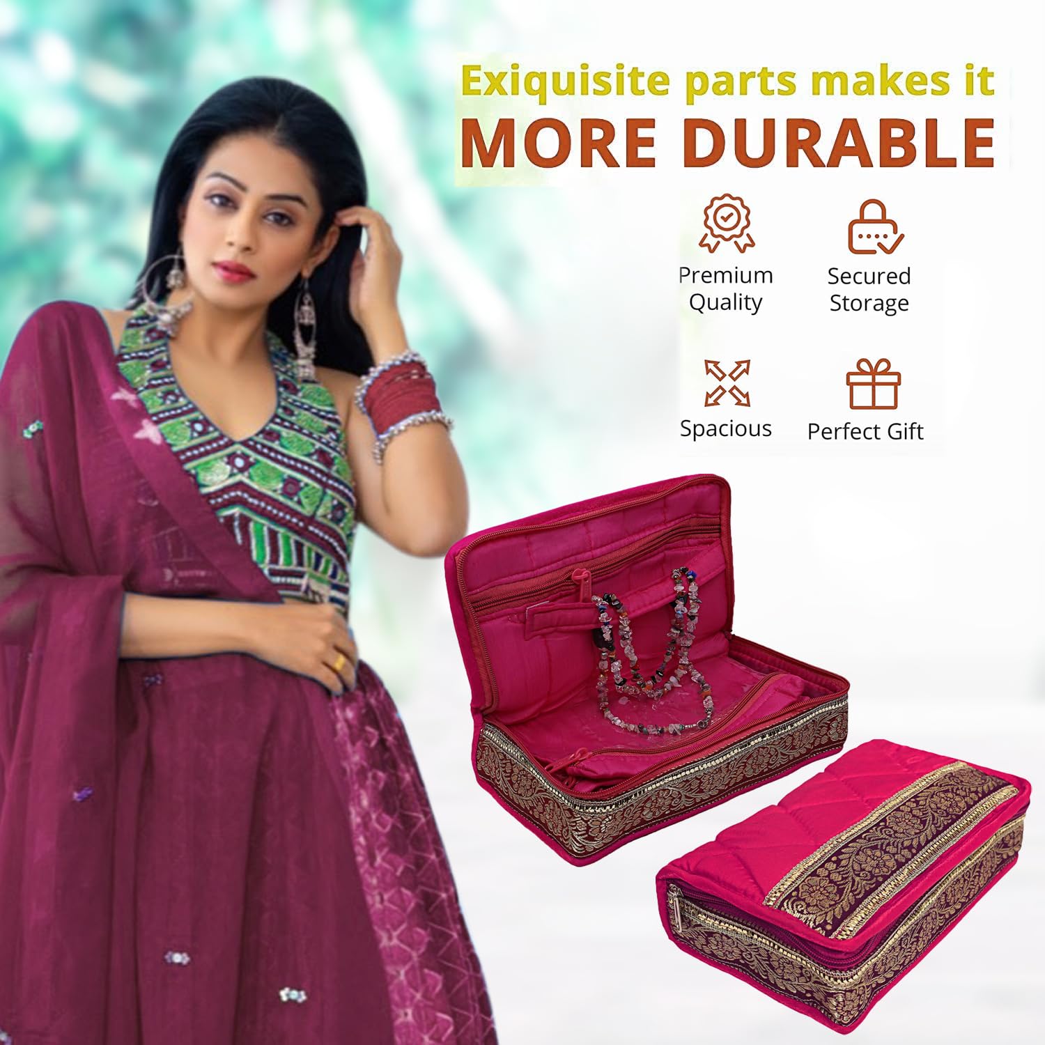 Kuber Industries has always been coming up with innovative products to take care of your family, we offer a wide range of our products which inspires the customers to choose from various options. Maybe you all must have liked our products. That's why we are continuously providing quality products to maintain the satisfaction of the customers, in this sequence we are continuously moving forward. Similarly, we present you the jewelry kit that comes with 5 transparent pouches to keep your expensive jewelry safe and secure. This kit is equipped with gota lace which is a unique one, which can be used to store necklaces, earrings, bracelets, rings and much more, and can be used while traveling and carrying your heavy jewelery with you can be done. Nice option that will help you to take apart the cover. Jewelry kits are commonly used for travel or to keep jewelry organized at home.Detailed Specifications: