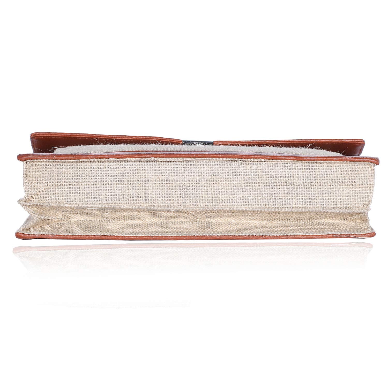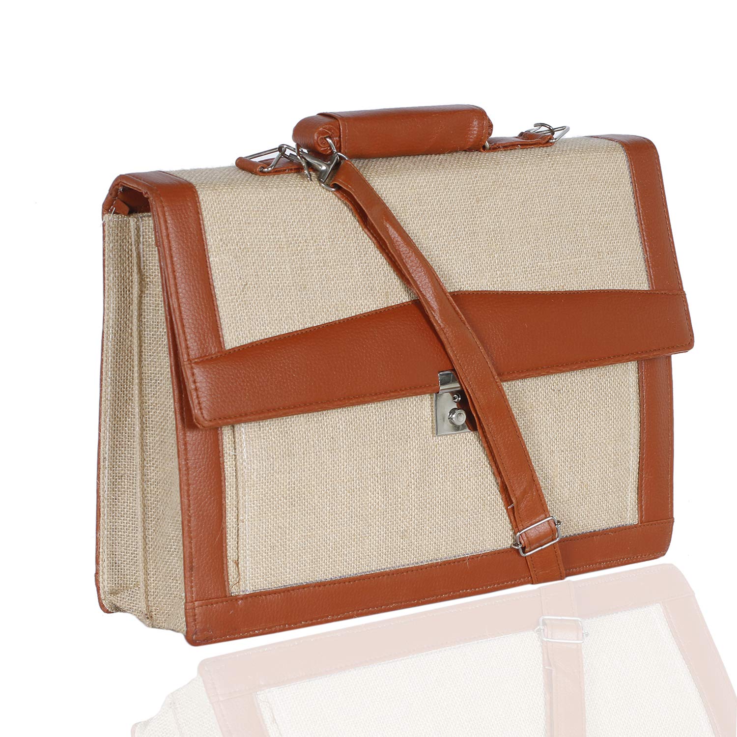 Kuber Industries laptop bag is made of quality jute and soft leather material. This laptop bag is the great combination of style and durability. This bag is durable, long-lasting and elegant look with a convenient storage solution. This bag has two big compartment and three other compartments. This bas has a handle and an adjustable shoulder strap to easily carry it. Outer storage compartment is great for a phone, tablet, pens, cables and other essentials. Ideal for professionals, students to business meetings, interviews, etc.Detailed Specifications: