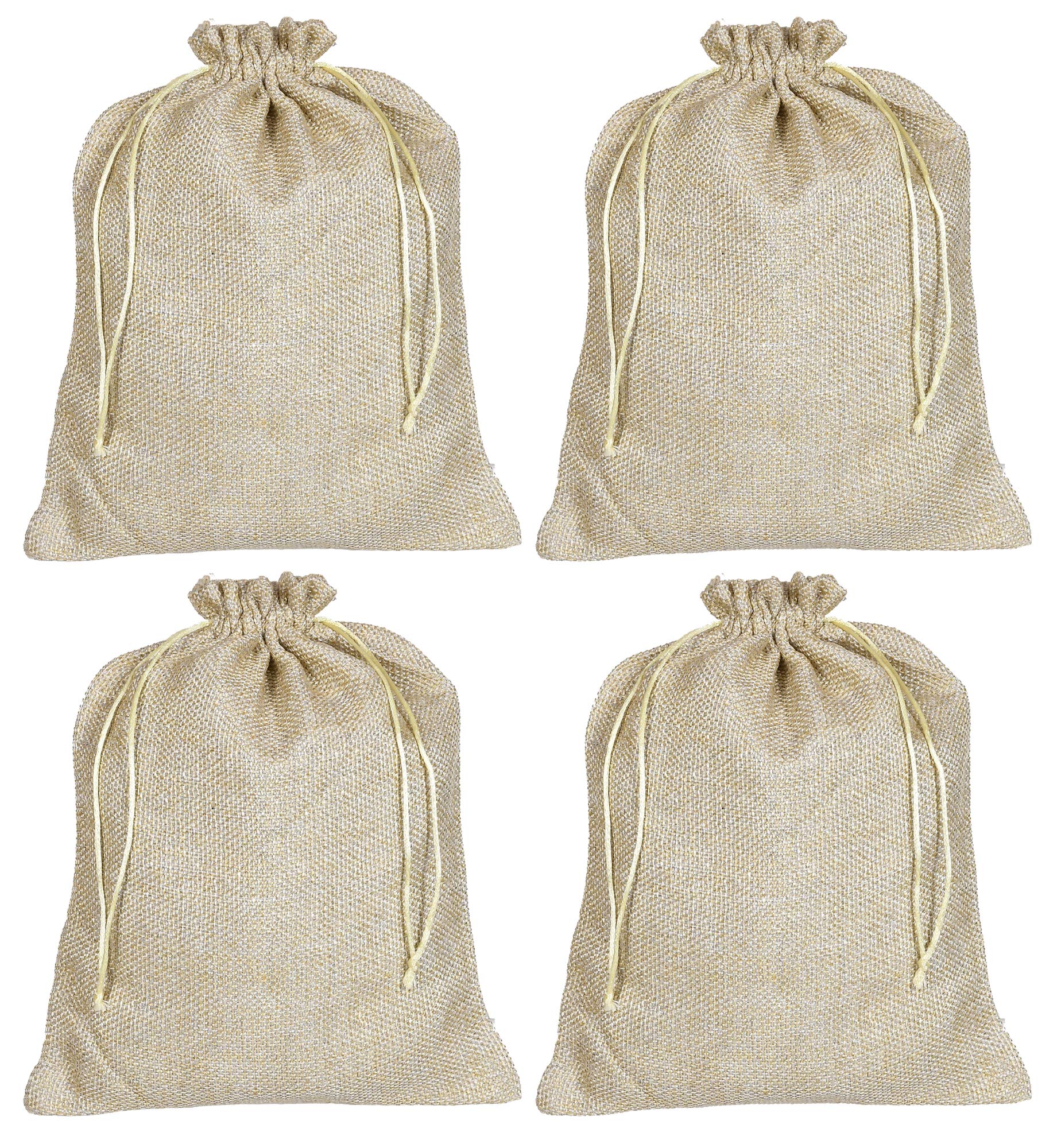 Eco-friendly potli material, Large vintage jute gift bags with original and earthy look, comes with unique double drawstring. Multi-Function for storing Large object items such as Large gifts, coins, jewelry, snacks, candy, wedding favors, makeup bottle cream jar and any other of your Large daily items to keep all of them in a bag clean and organized. Wide use application for wedding favor gift, crafting DIY projects, home use, travelling, birthday, party, bridal shower, and any other occasions. Inner is made of soft material which prevent scratching or keeping items clean when storing. Super quality and competitive price.Detailed Specifications: